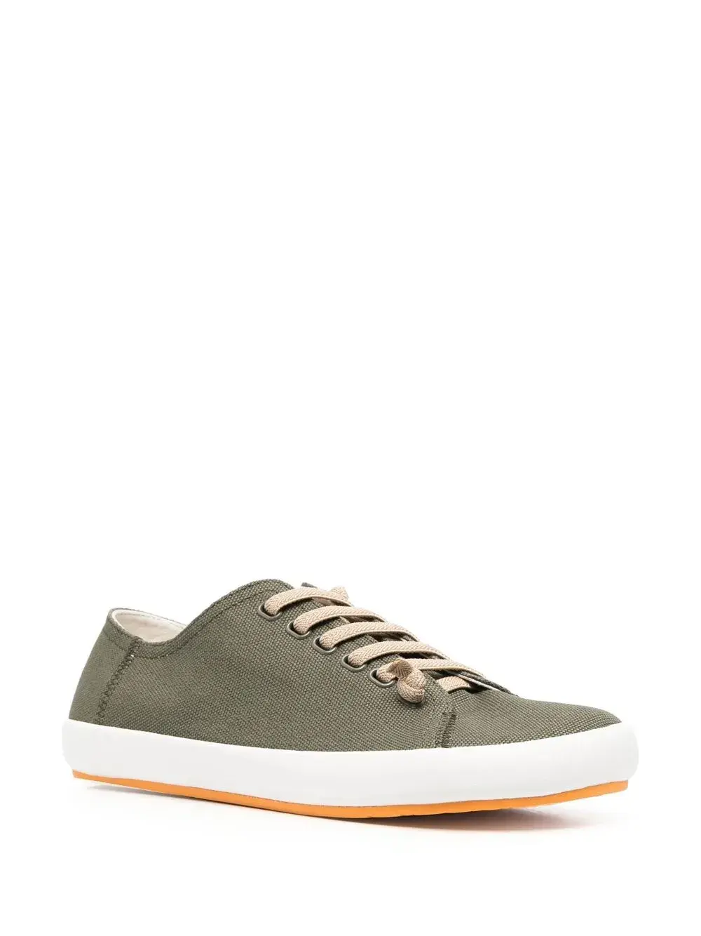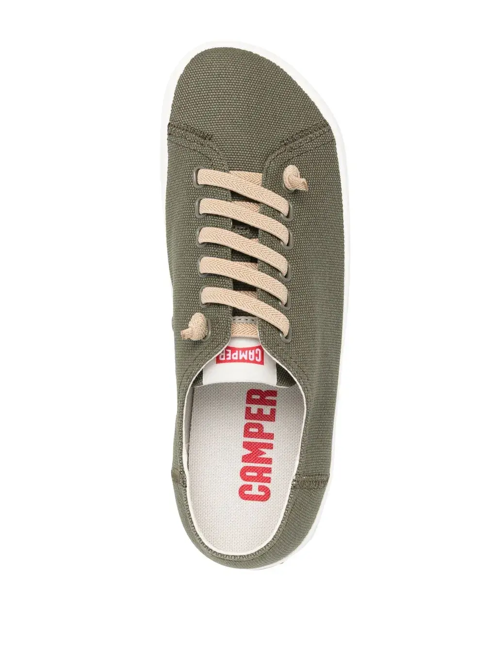 Оливково-зеленый, переработанный хлопок, переработанный полиэстер, фактурная отделка, стелька с логотипом, миндалевидный носок, шнуровка спереди и плоская резиновая подошва.