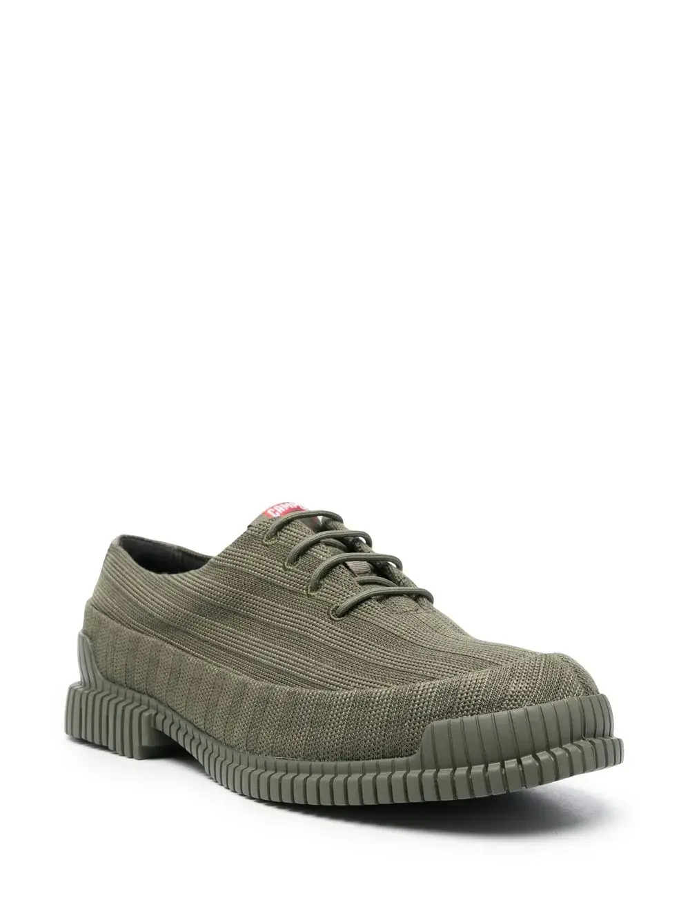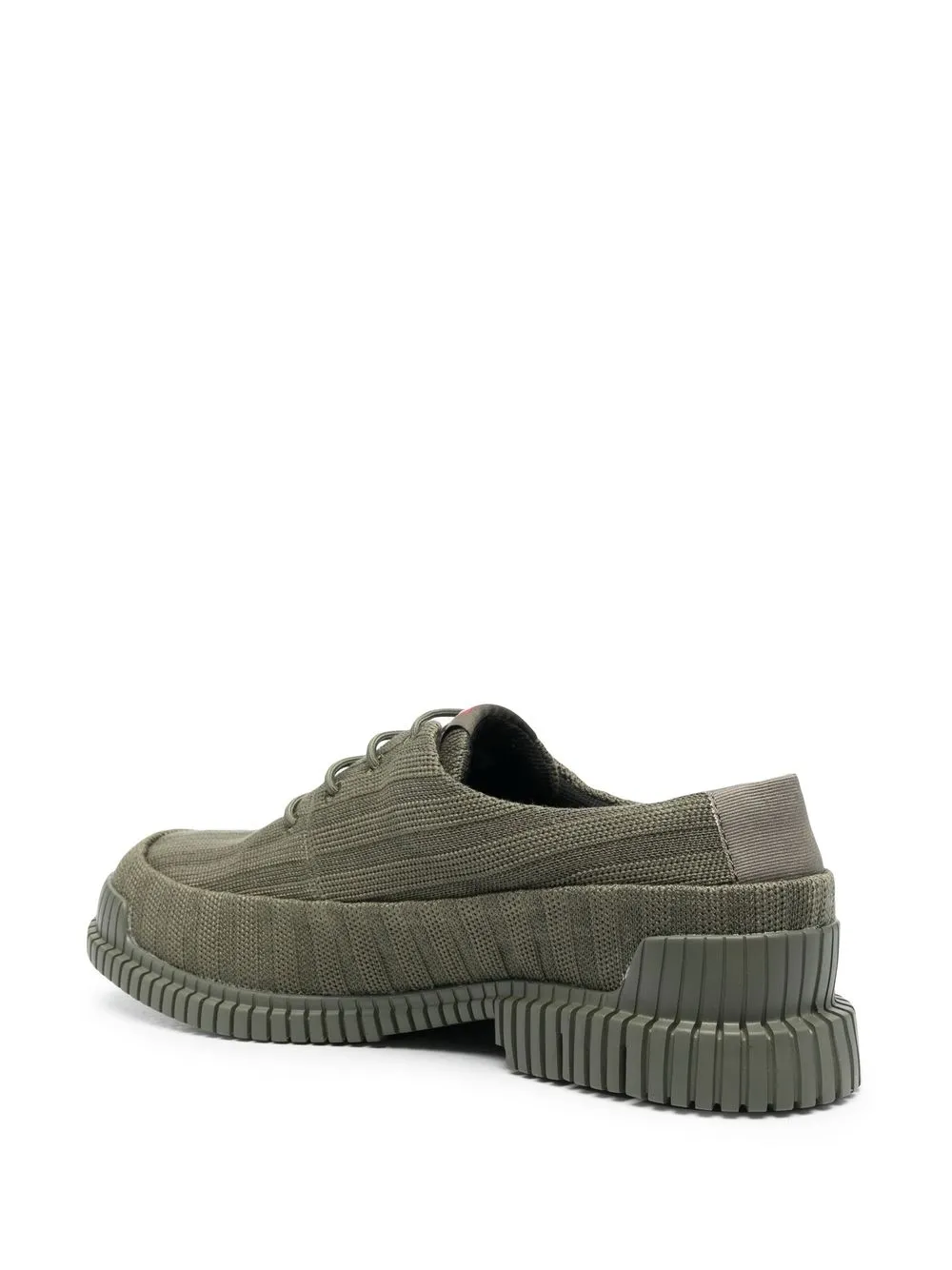 Подробнее о товаре: Хаки, TENCEL Lyocell, смесовый переработанный полиэстер, переработанный полиэстер, детали в рубчик, нашивка с логотипом на язычке, закругленный носок, шнуровка спереди и рифленая резиновая подошва.