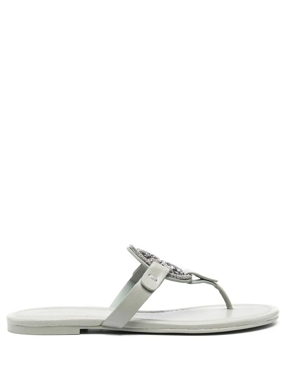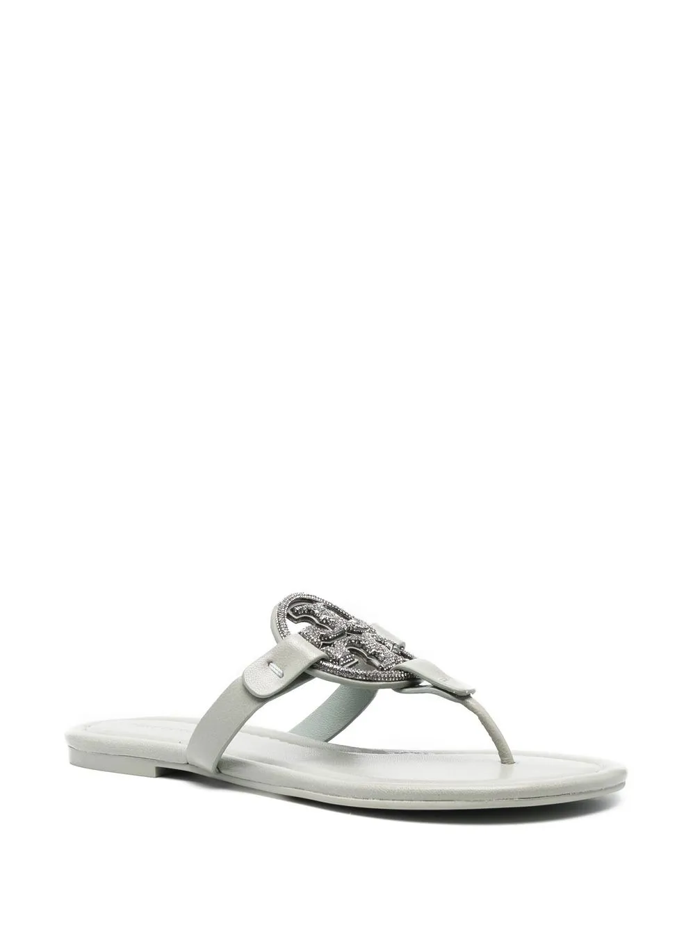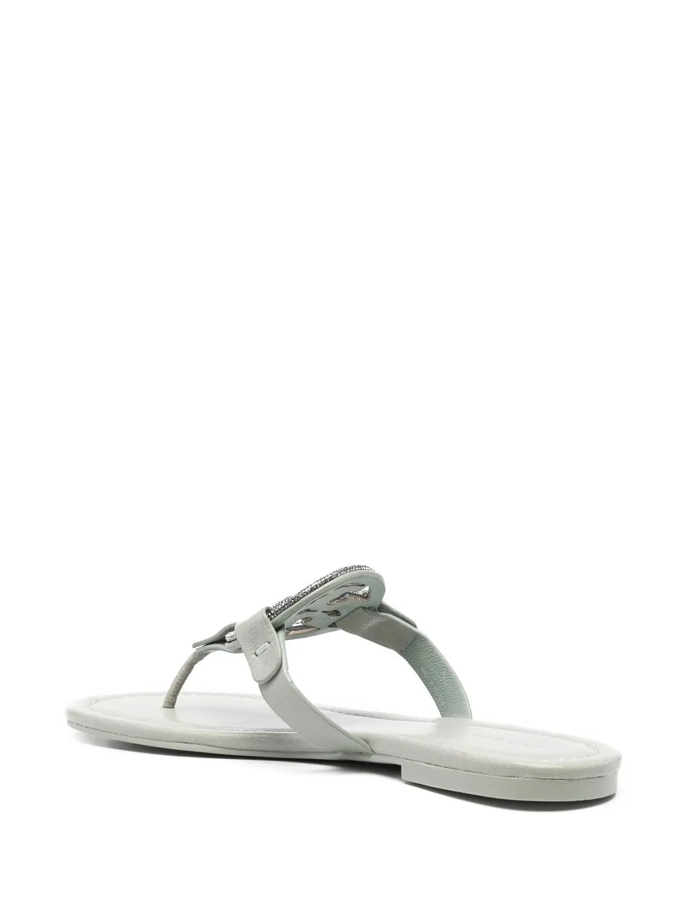Пастельно-зеленый, телячья кожа, декор из кристаллов, металлический логотип, декор Double T, открытый носок, стринги, кожаная стелька с логотипом и плоская подошва