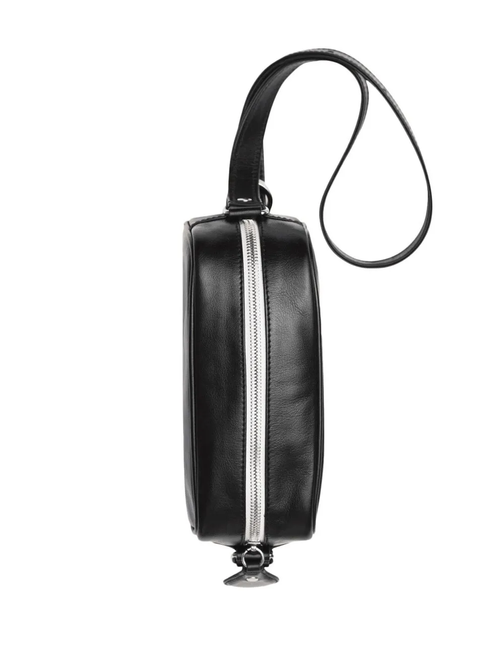 Черный, телячья кожа, застежка на молнии сверху, ремень на плечо и основное отделение