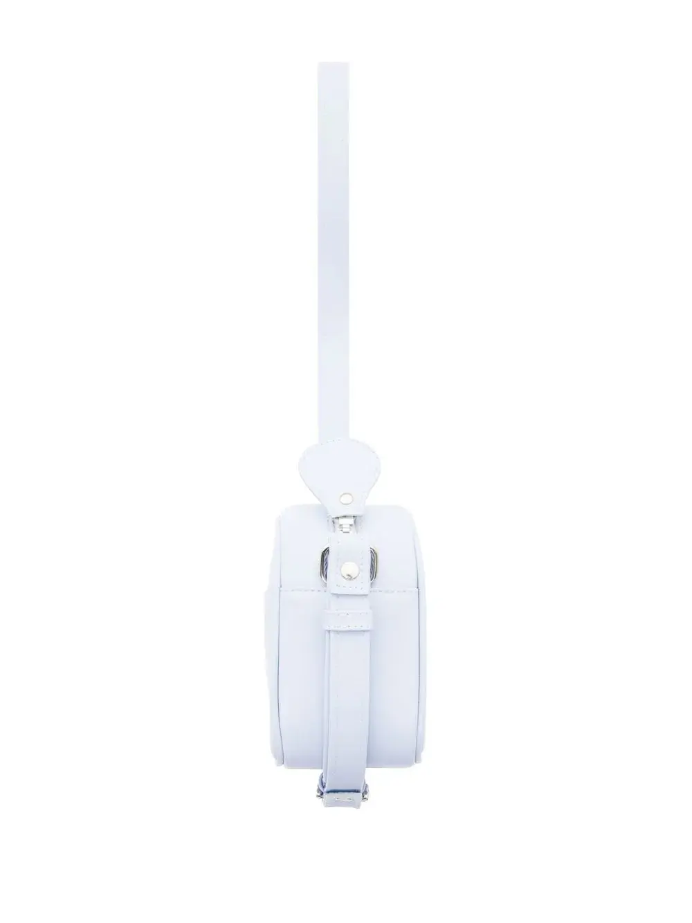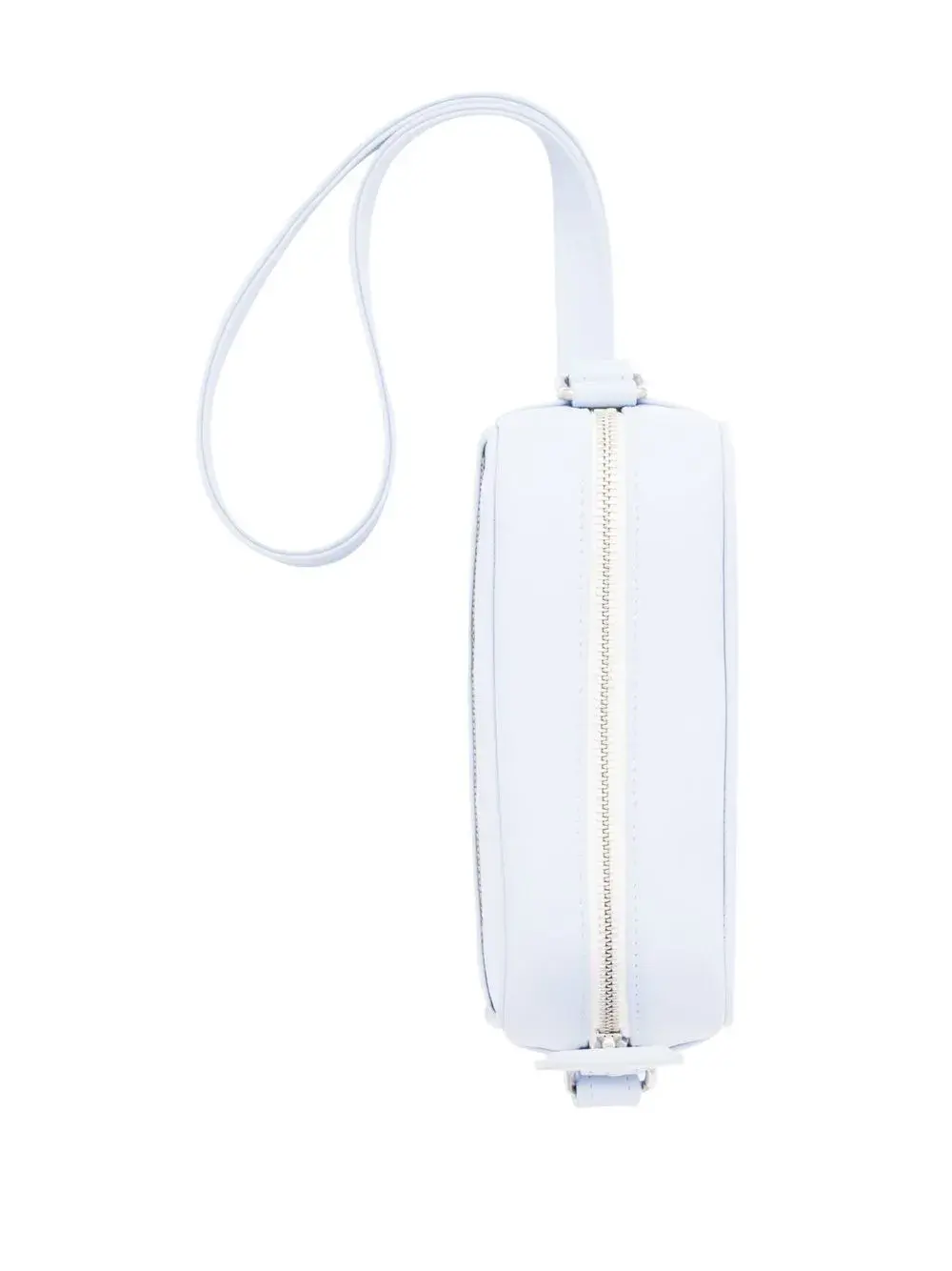 Голубой, кожа, нашивка с логотипом спереди, застежка на молнии сверху, регулируемый ремень на плечо и основное отделение