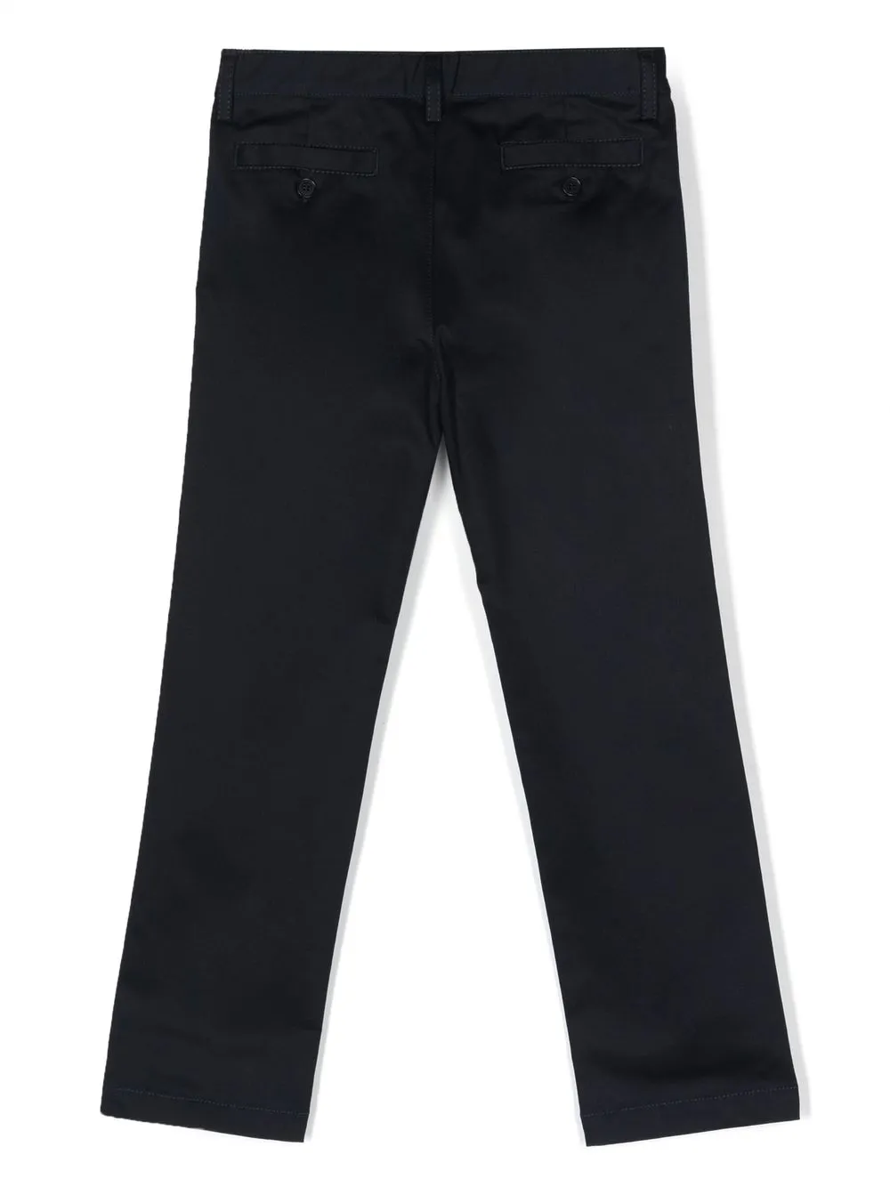 Темно-синий, хлопок, прямой крой, застежка на молнии и пуговице спереди и петли для ремня
