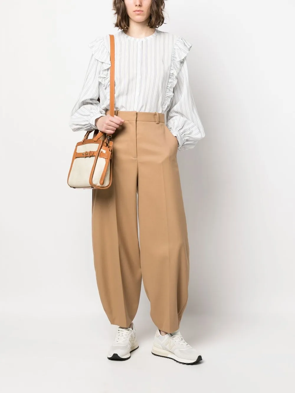 Подробнее о товаре: Белый, синий, смесовая ткань EcoVero, узор в вертикальную полоску, вставки с оборками, круглый вырез, планка на пуговицах спереди, длинные рукава, манжеты на пуговицах и прямой подол.