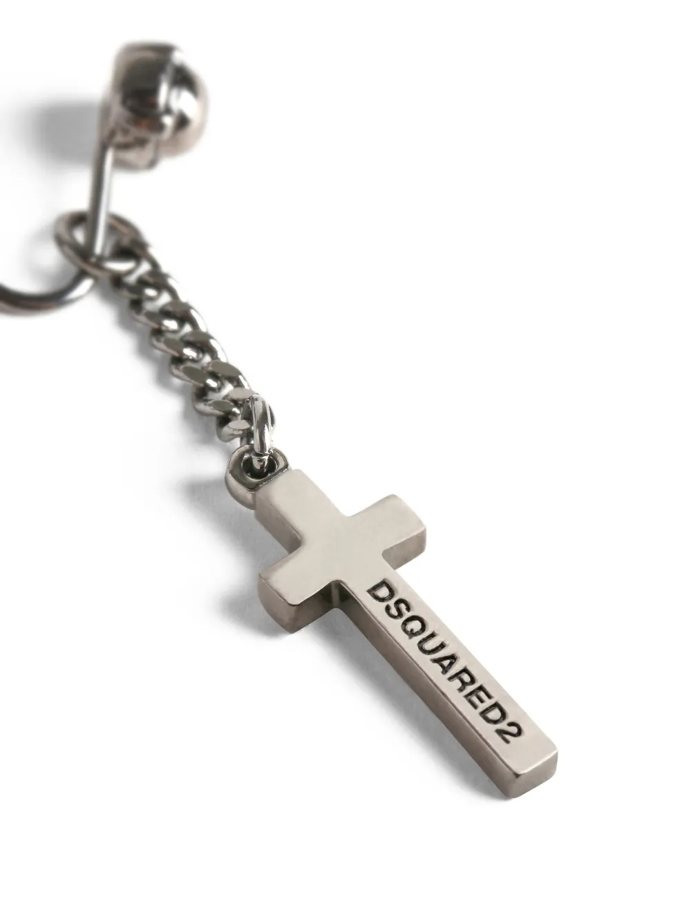 Серьга-подвеска с гравировкой логотипа и крестом Dsquared2, серебристый
