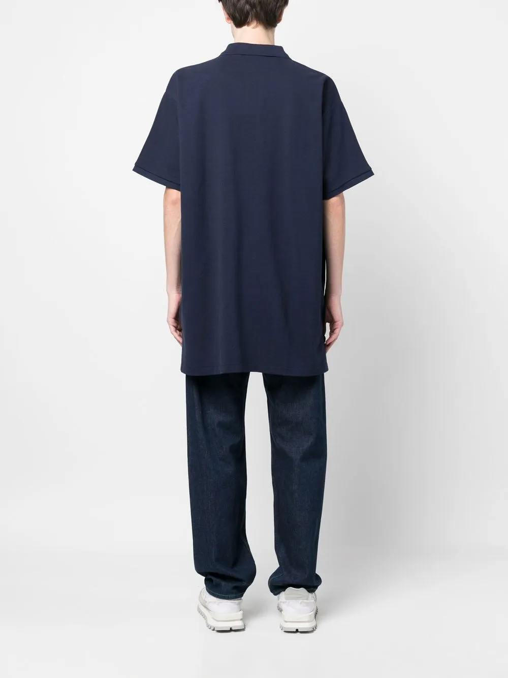 Темно-синий, хлопок, ткань пике, вышитый логотип спереди, воротник поло, планка на пуговицах спереди и короткие рукава