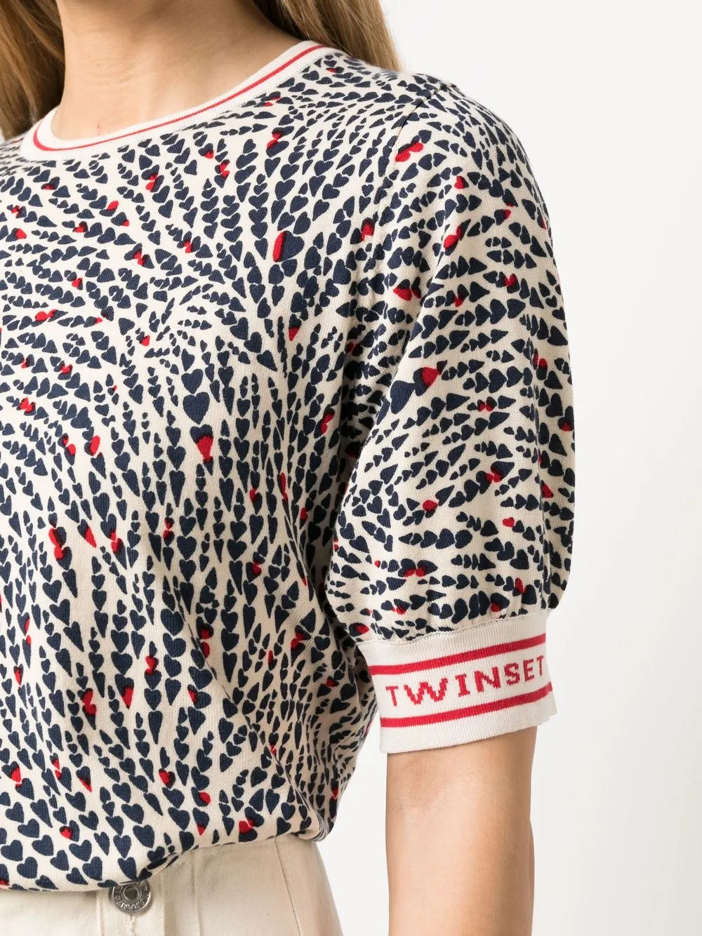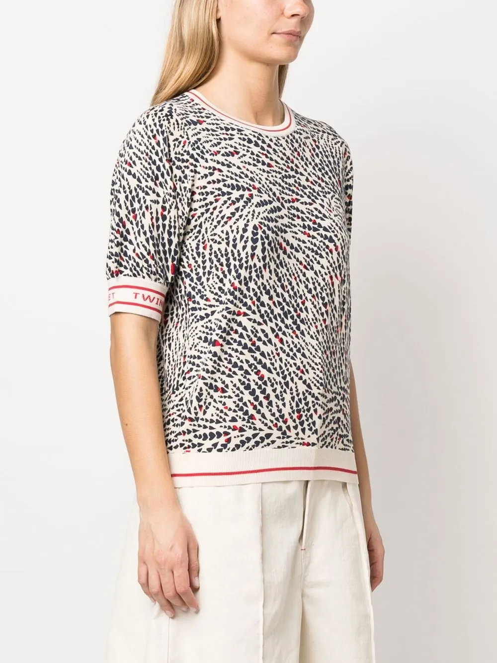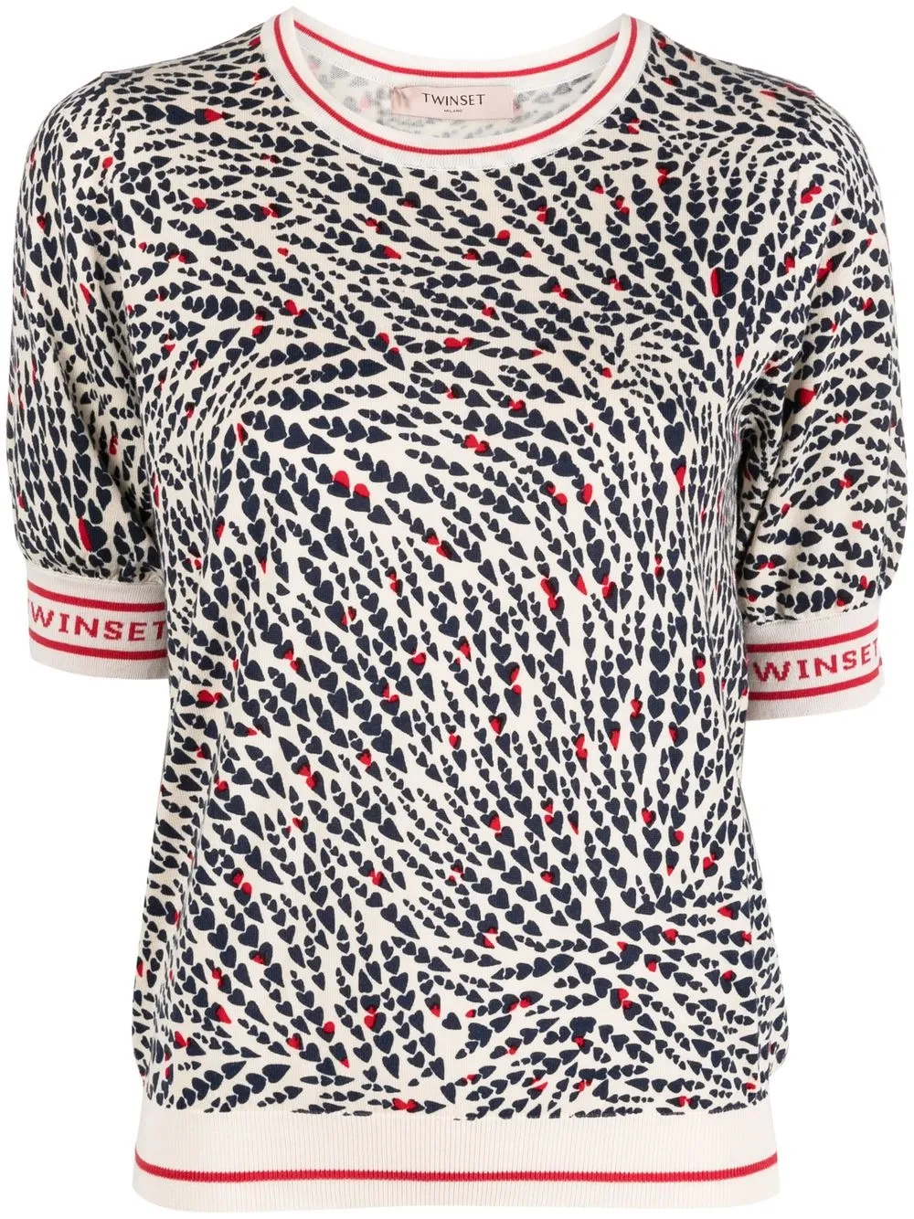 Ткань джерси, принт с изображением сердца, логотип на подоле и принт с логотипом на рукаве