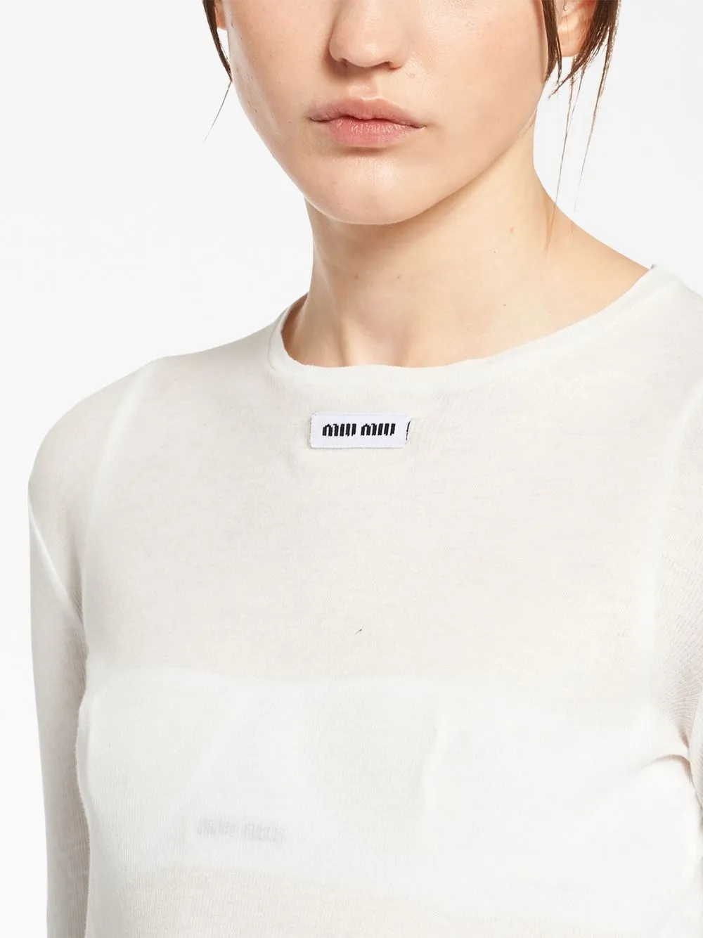 Платье в рубчик с нашивкой-логотипом Miu Miu, белый 121 722₽