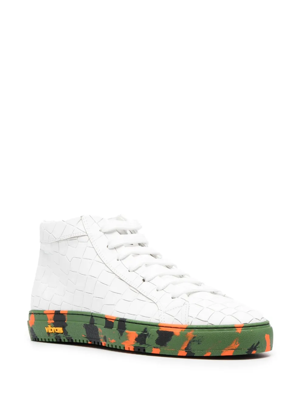Белый/разноцветный, телячья кожа, миндалевидный носок, шнуровка спереди, тиснение под кожу крокодила и плоская резиновая подошва. .