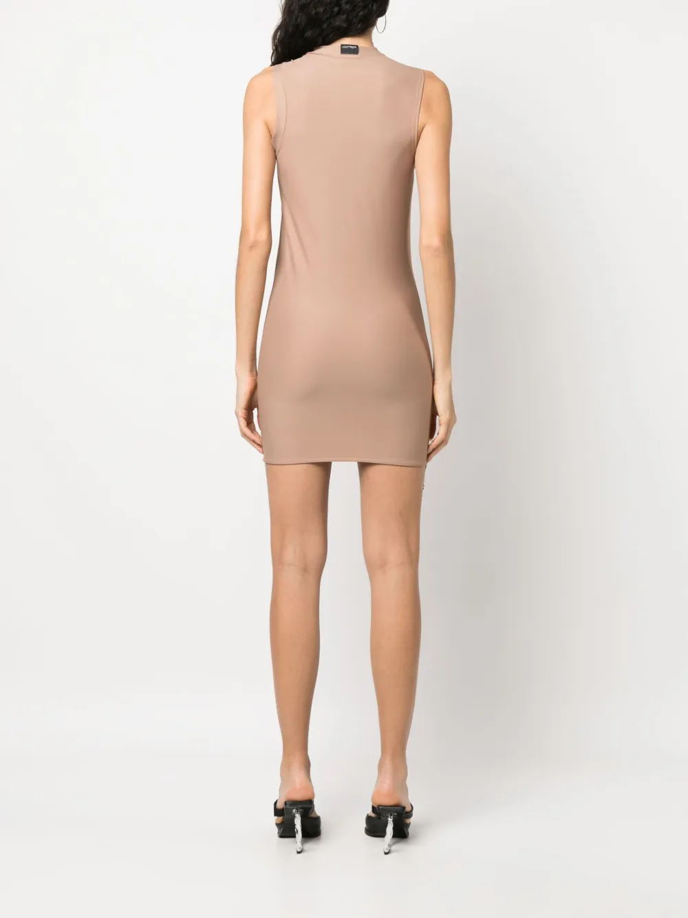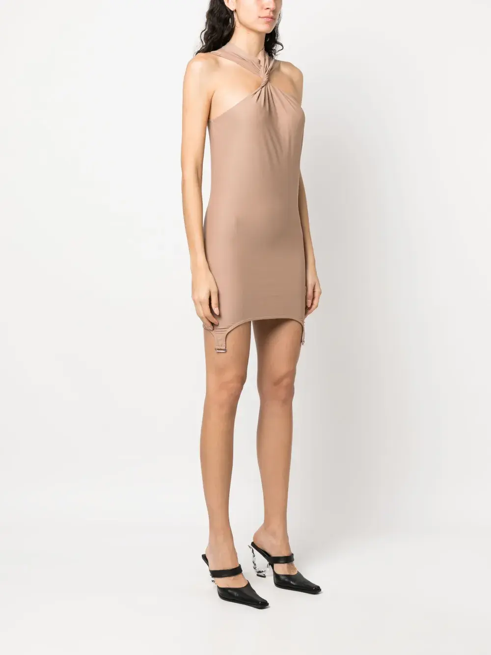 Расцветка Blush Beige, эластичный материал, перекрученная деталь, без рукавов и закругленный подол