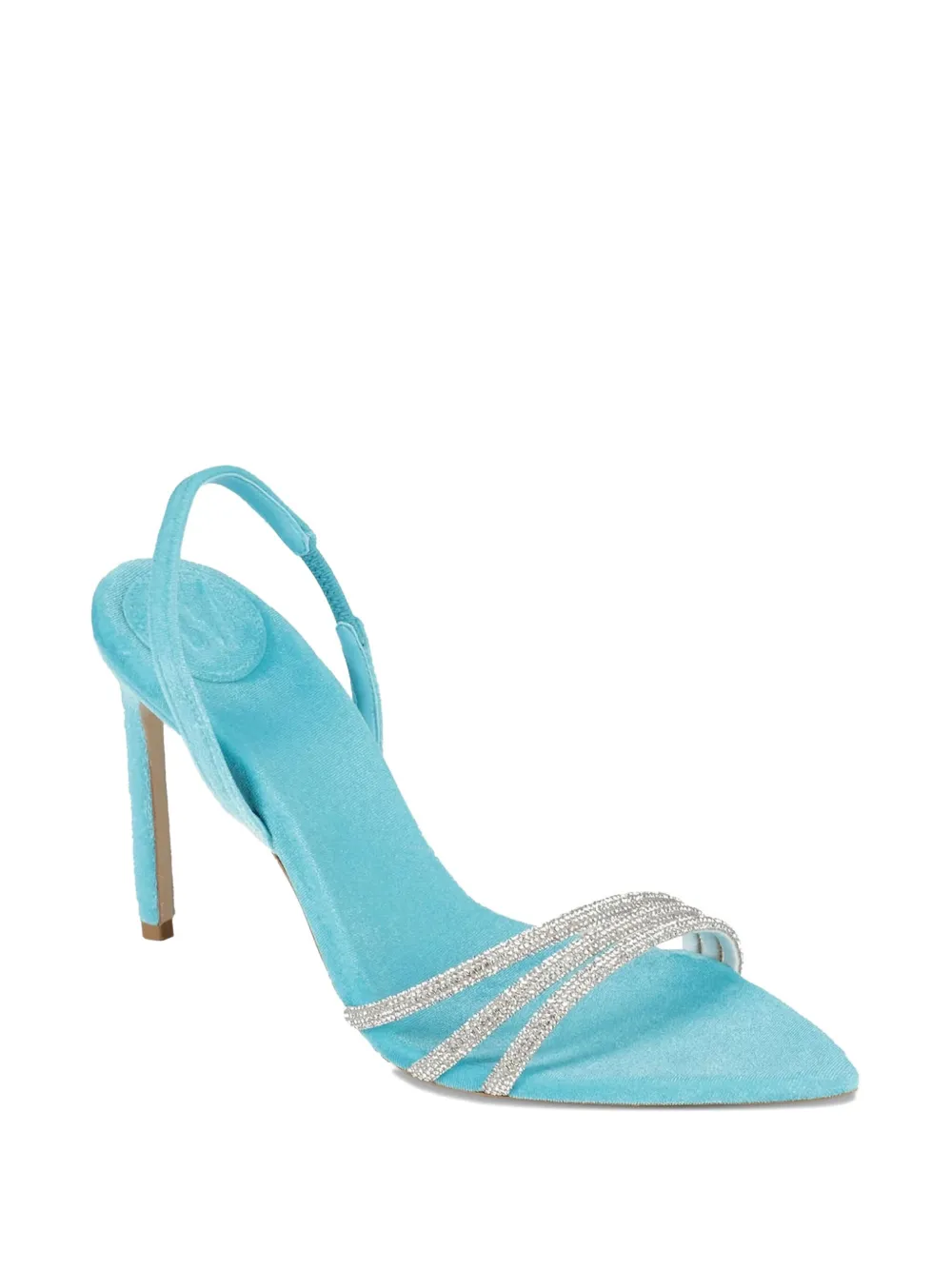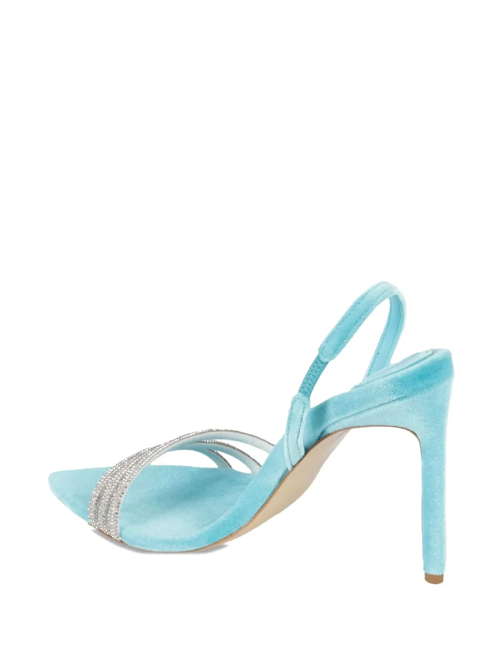 Сине-зеленый, бархат, декор из кристаллов, открытый носок, заостренный носок, эластичный ремешок на пятке, каблук-шпилька, стелька с логотипом и кожаная подошва