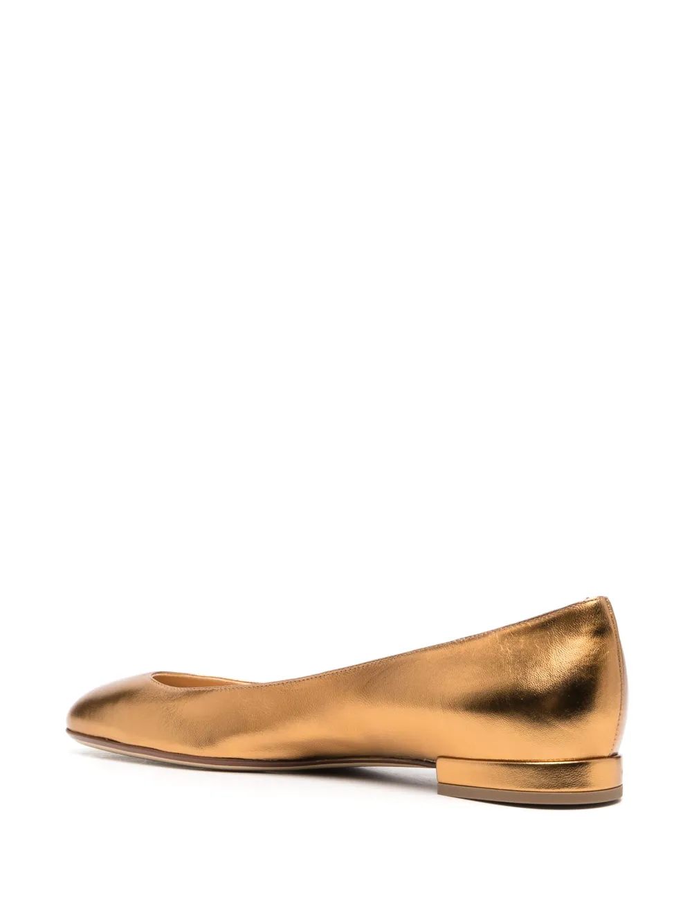 Золотистый, телячья кожа, эффект металлик, закругленный носок, модель без застежки, кожаная стелька с логотипом и плоская подошва