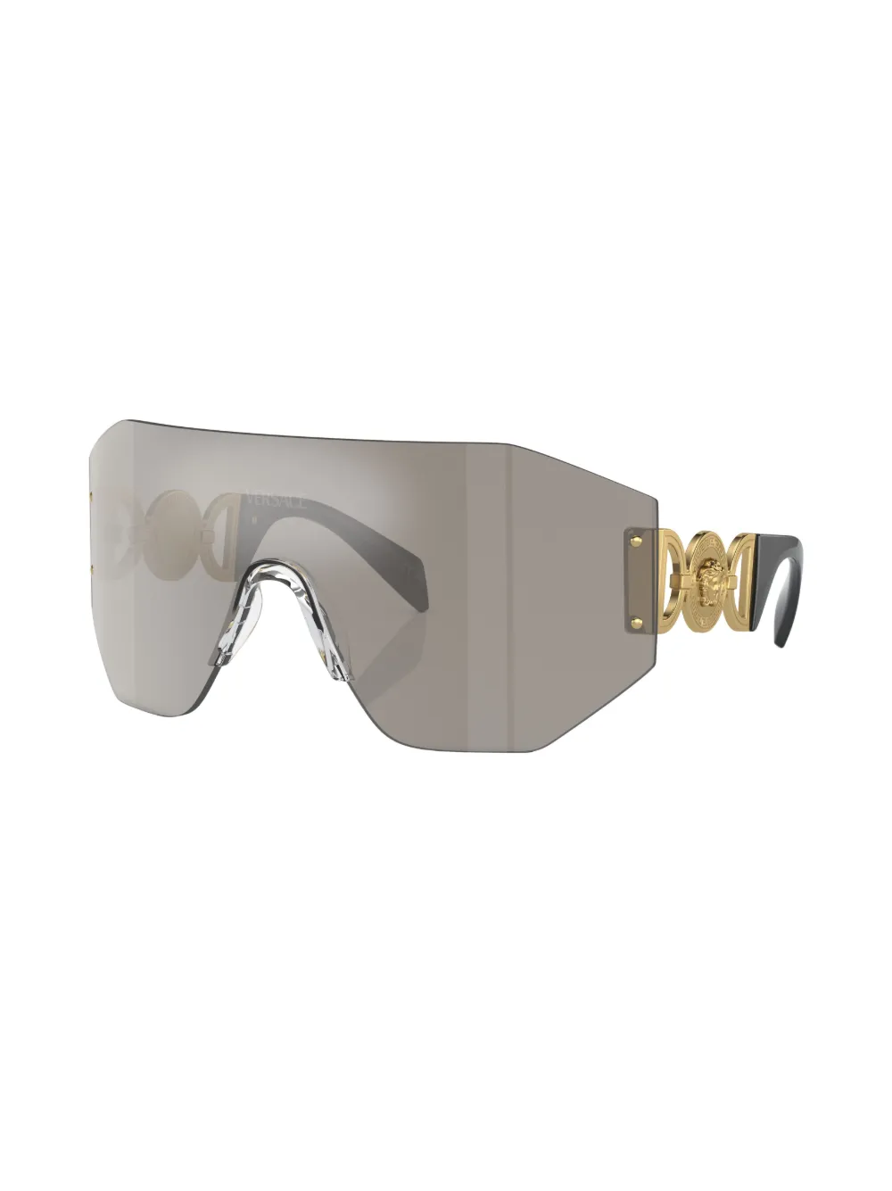 Светло-серый, зеркальные линзы, оправа с боковой защитой, оправа оверсайз, логотип спереди, узор Medusa Head, золотистый металлический логотип, широкие дужки и дужки с закругленными концами, в комплект входит защитный чехол для очков