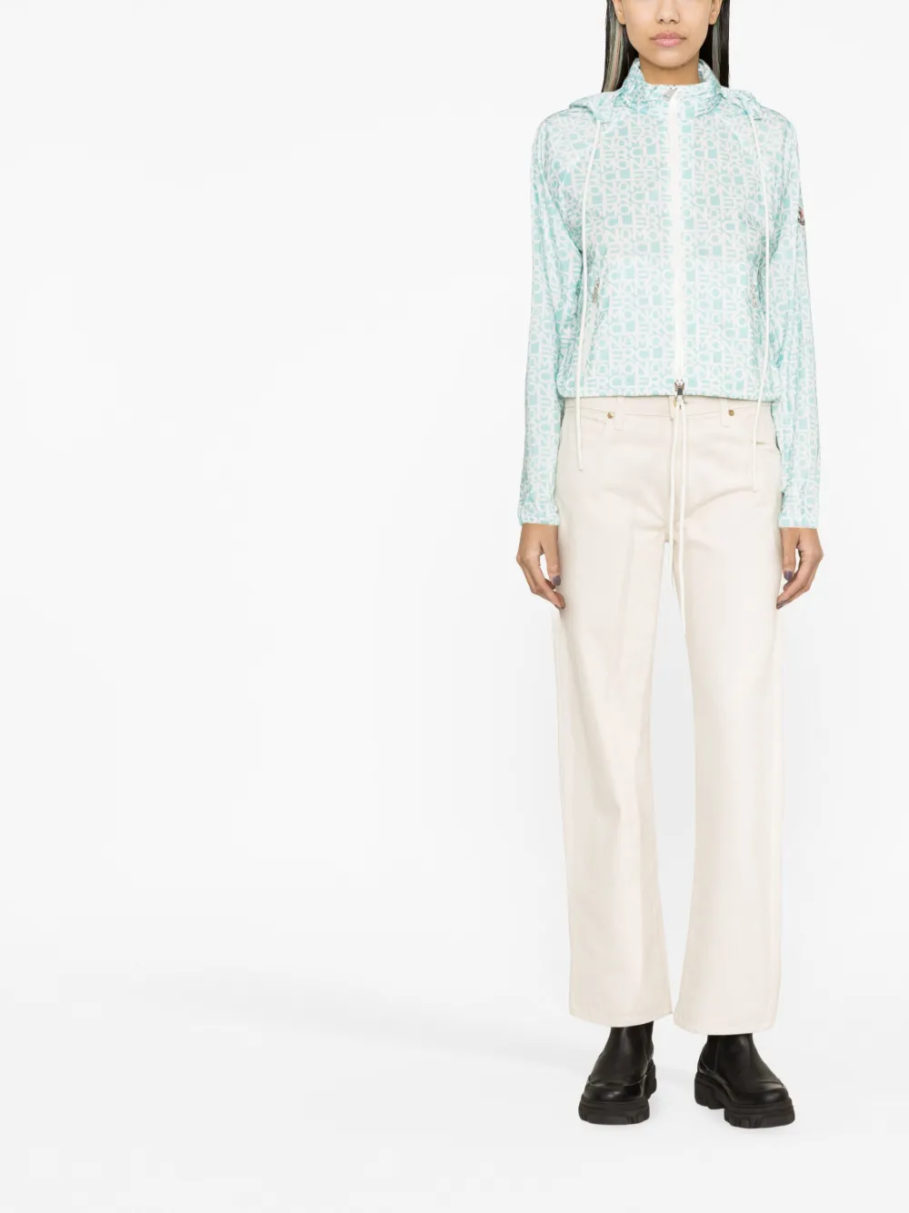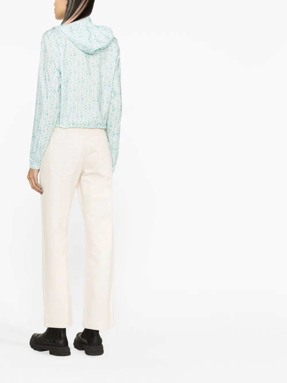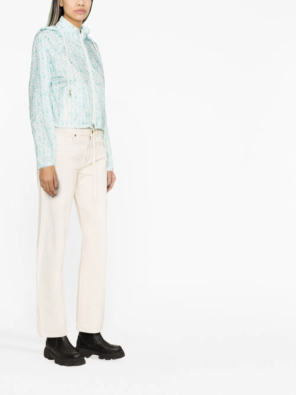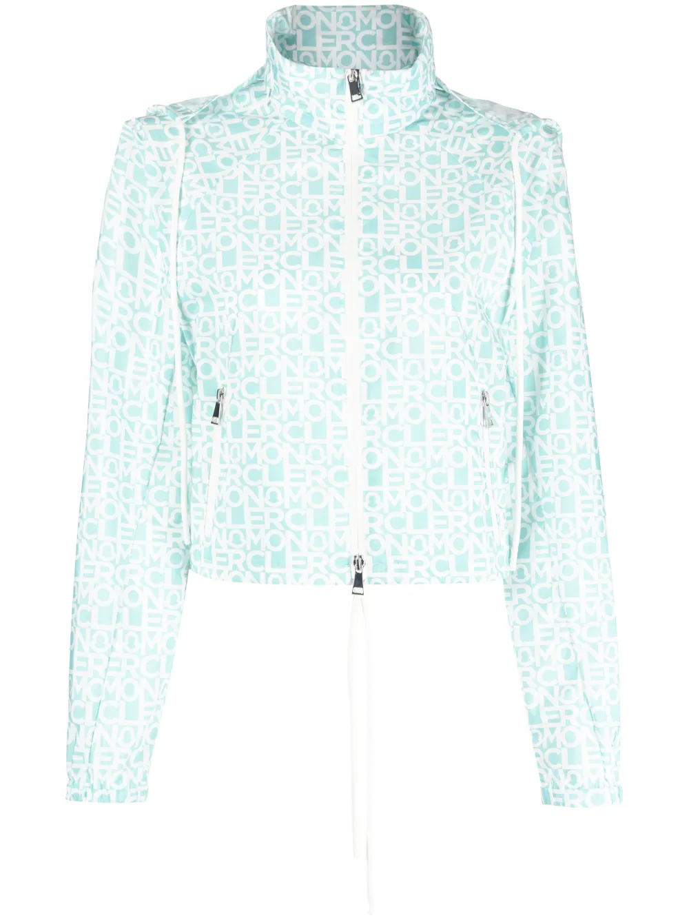 Зеленый, белый, сплошной принт с логотипом, высокий воротник, потайной капюшон, двусторонняя молния спереди, длинные рукава реглан, эластичные манжеты, два кармана на молнии по бокам и подол с кулиской