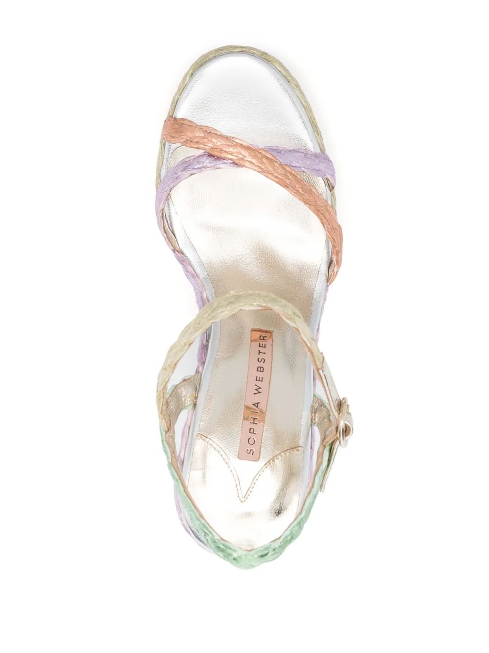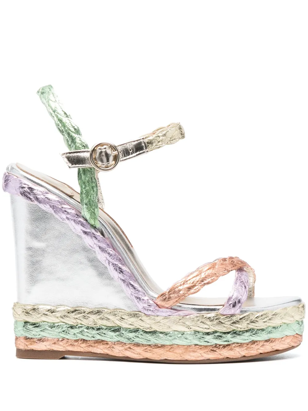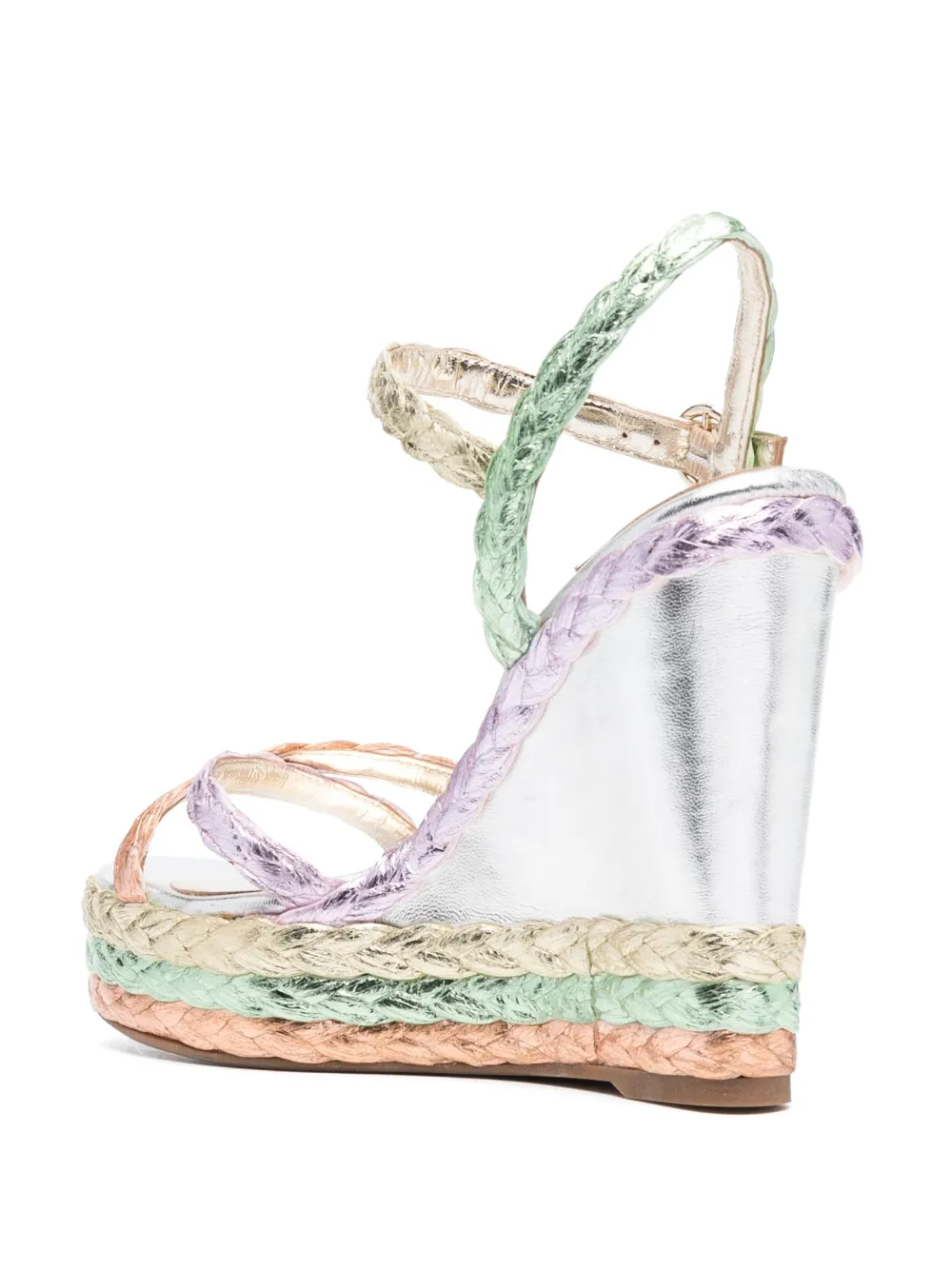 Разноцветный, телячья кожа, дизайн колор-блок, покрытие с эффектом металлик, плетеная отделка, перекрестные ремешки, ремешок на щиколотке с пряжкой и высокая танкетка