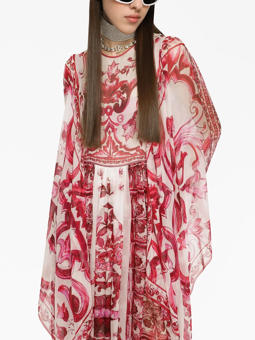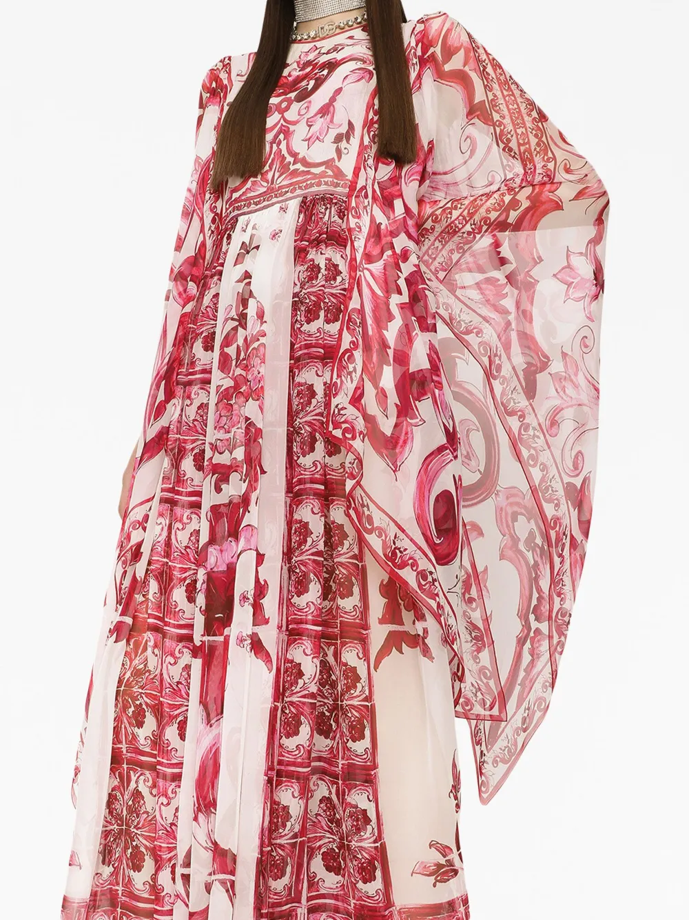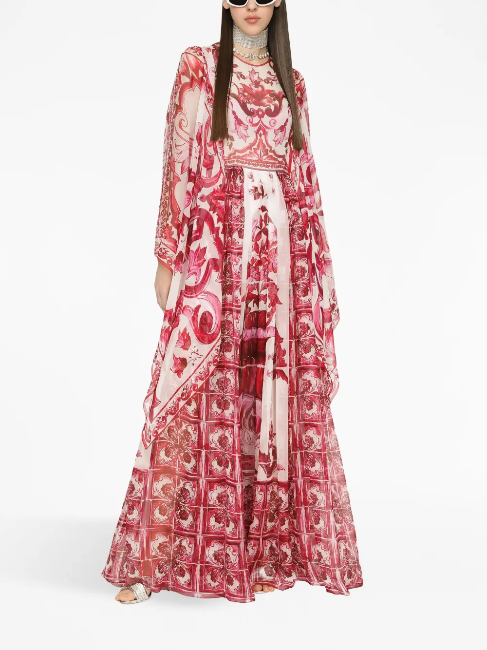 Длинное платье с принтом Majolica Dolce & Gabbana, красный