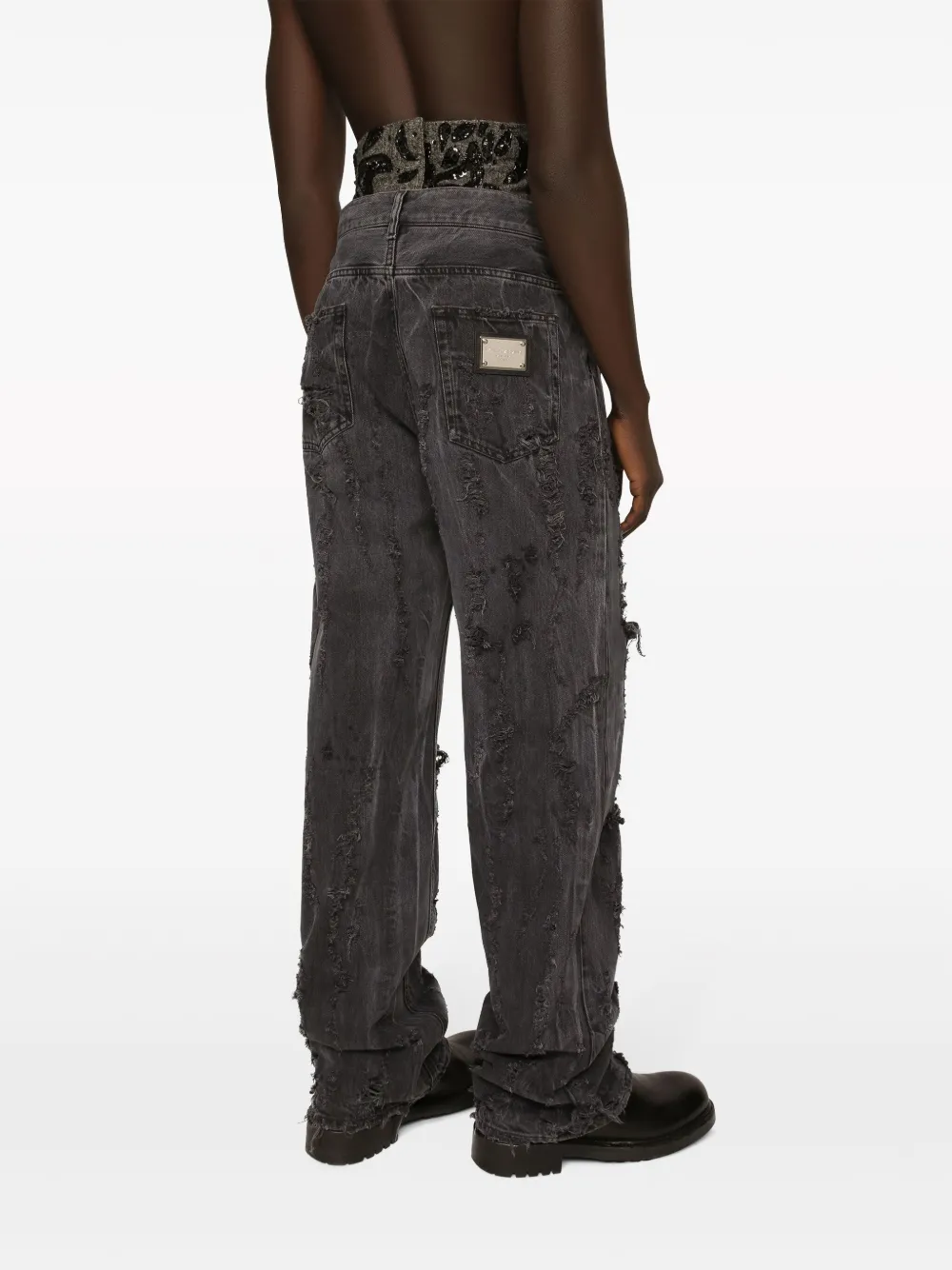 Прямые джинсы с эффектом потертости Dolce & Gabbana, черный