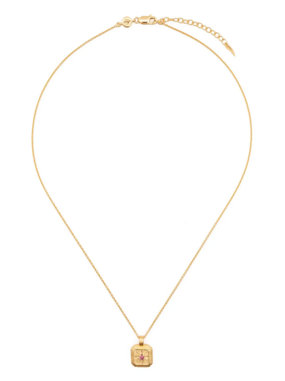 Золотистый, серебро с покрытием из переработанного 18-каратного золота, розовый турмалин, тонкая цепочка, подвеска в виде камня и застежка-карабин