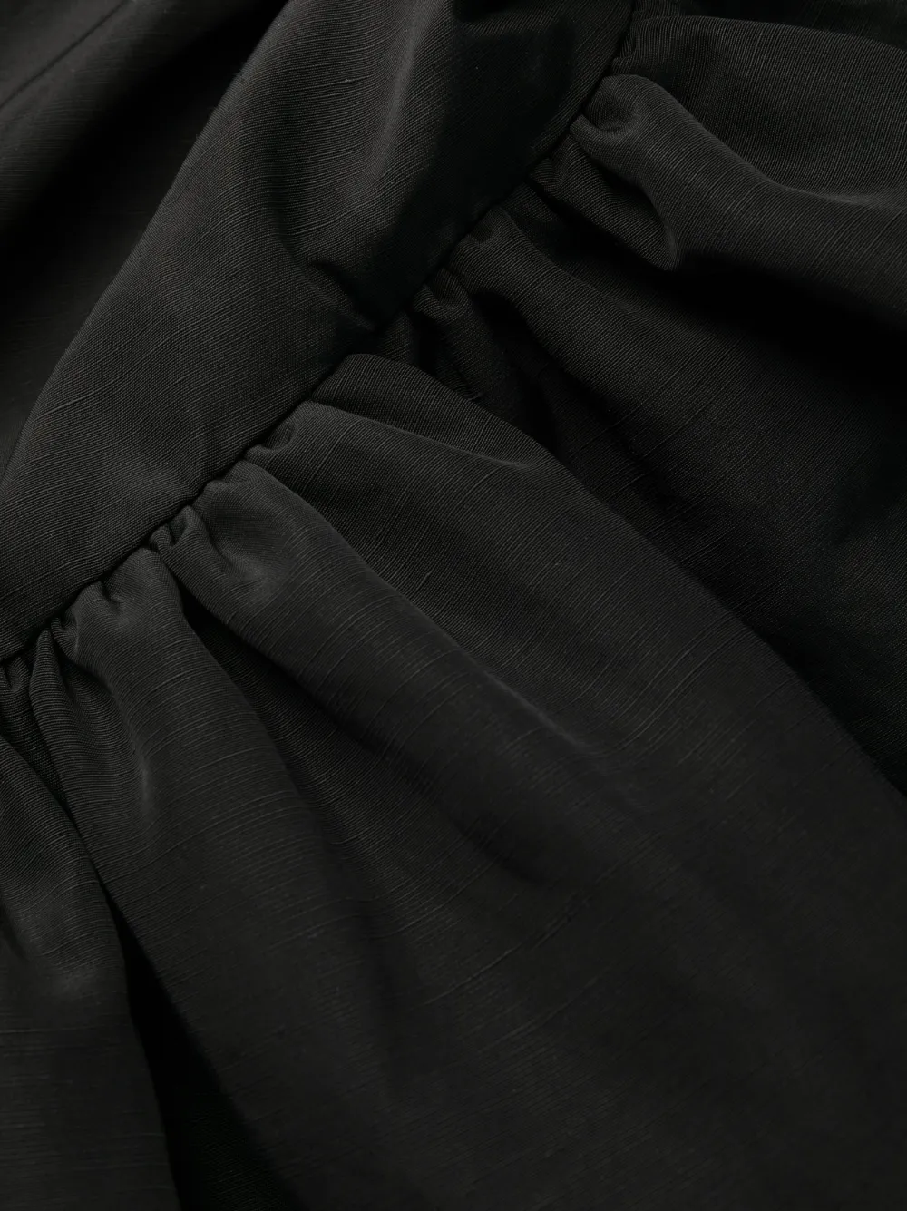 Смесовый лен, вырезные детали, застежка на молнии сзади, расклешенная юбка и длина до бедер