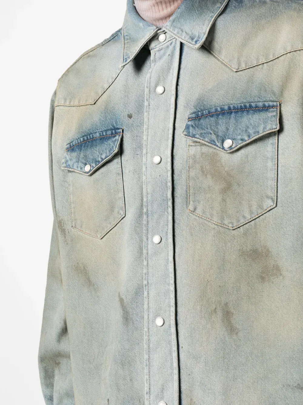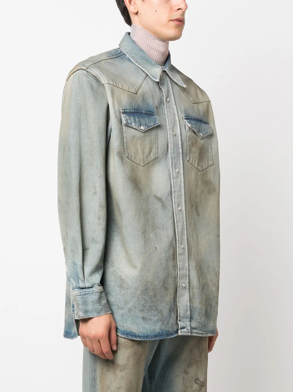 Джинсовая рубашка с эффектом потертости Acne Studios, синий 60 900₽