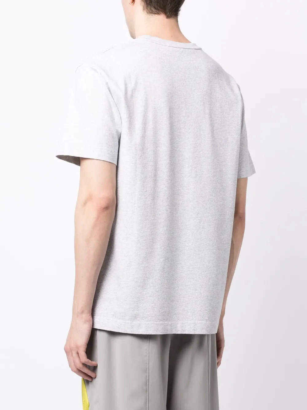 Светло-серый, хлопок, логотип, блестящий материал, круглый вырез, короткие рукава и прямой подол, это унисекс-модель, обратите внимание, что для нее используется мужская размерная сетка