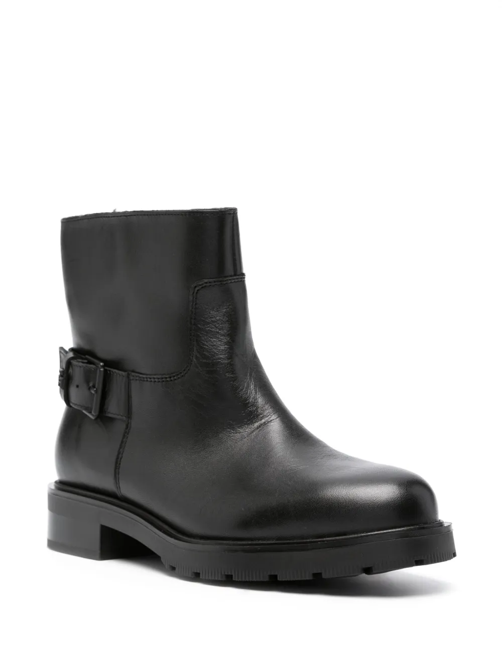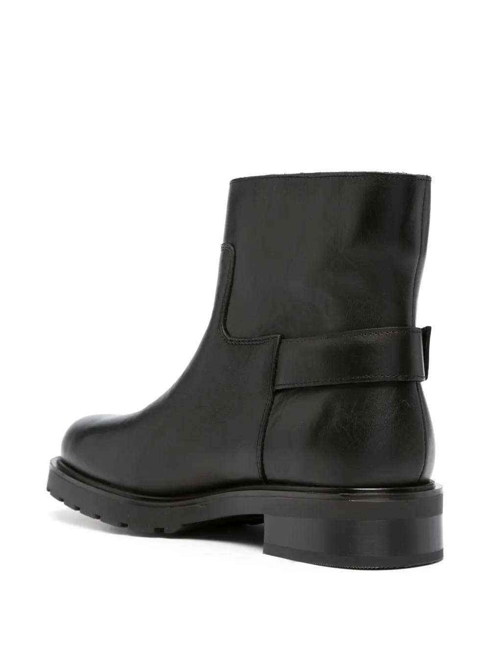 Черный, телячья кожа, строчка в тон, фурнитура в тон, декоративная пряжка, миндалевидный носок, модель без застежки, кожаная стелька с логотипом, резиновая подошва и высота по щиколотку