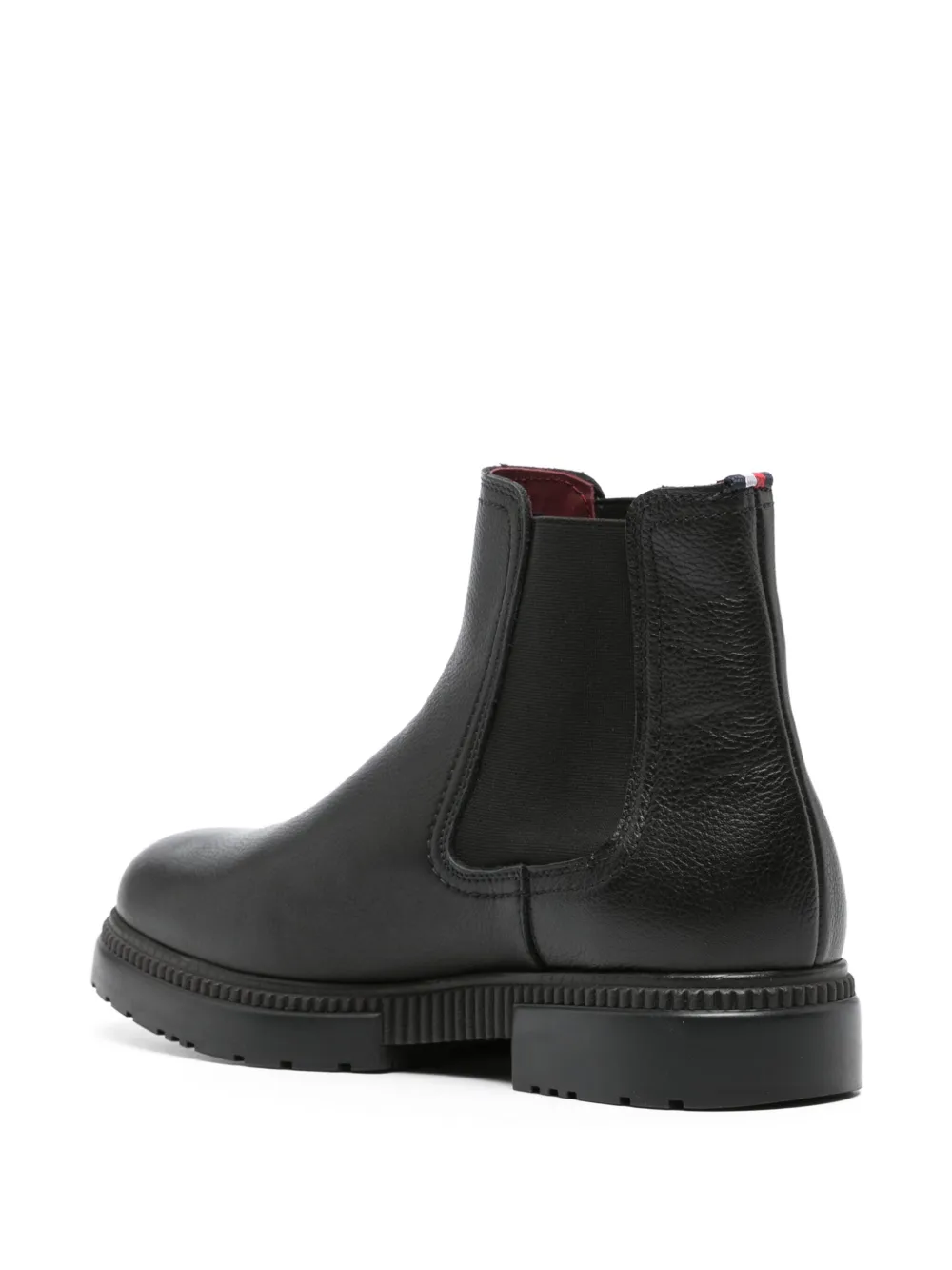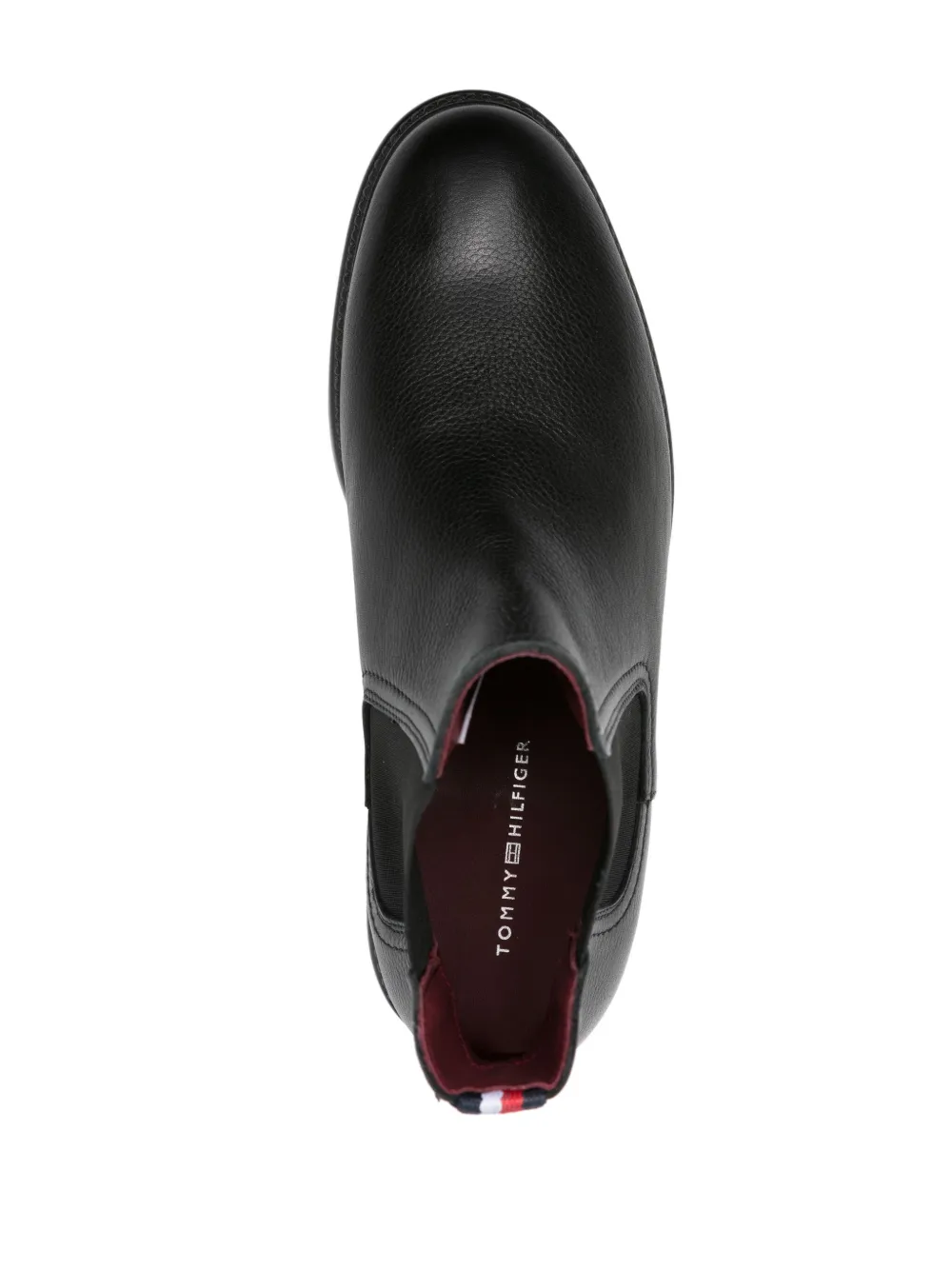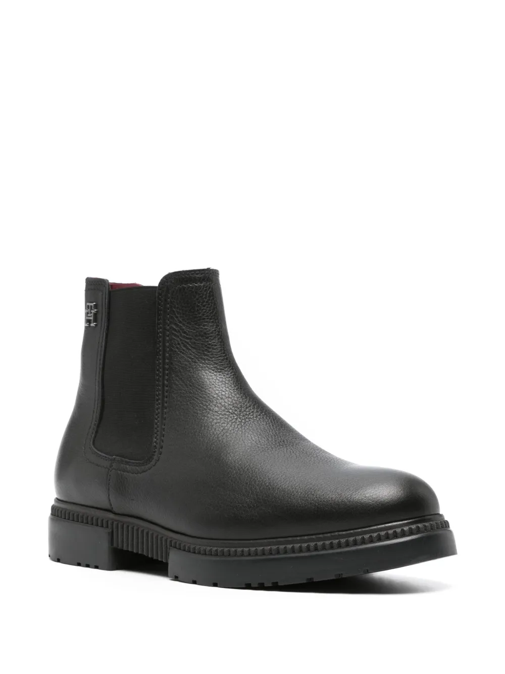 Расцветка Core Black, телячья кожа, зернистая текстура, металлическая монограмма, петля для подтягивания с логотипом, эластичные боковые вставки, серебристая фурнитура, закругленный носок, модель без застежки, стелька с логотипом, резиновая подошва и высота по щиколотку