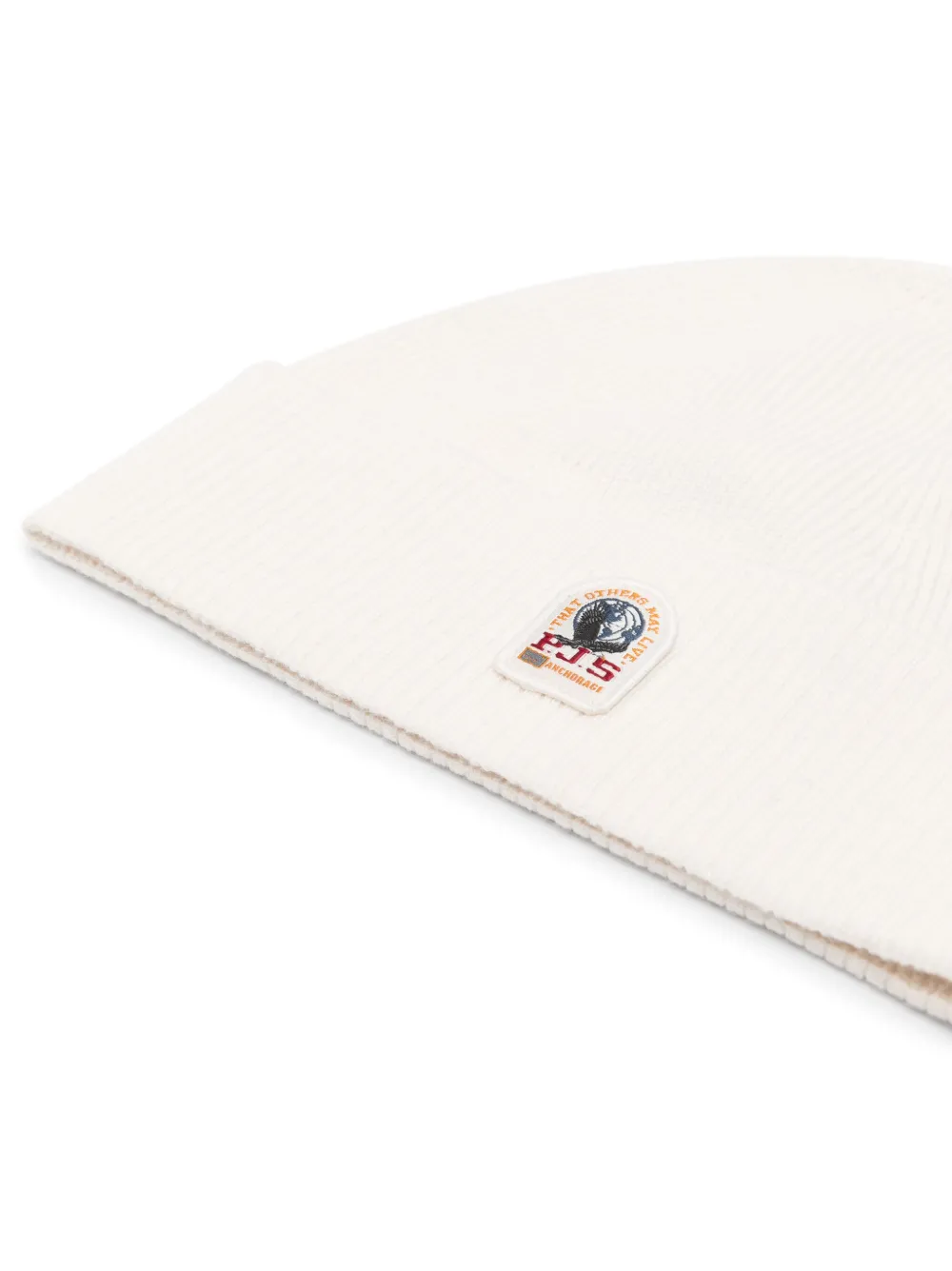 Шапка бини в рубчик с нашивкой-логотипом Parajumpers, белый
