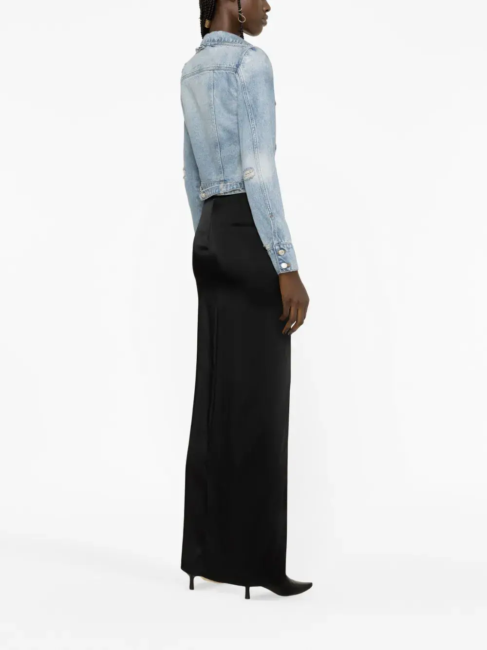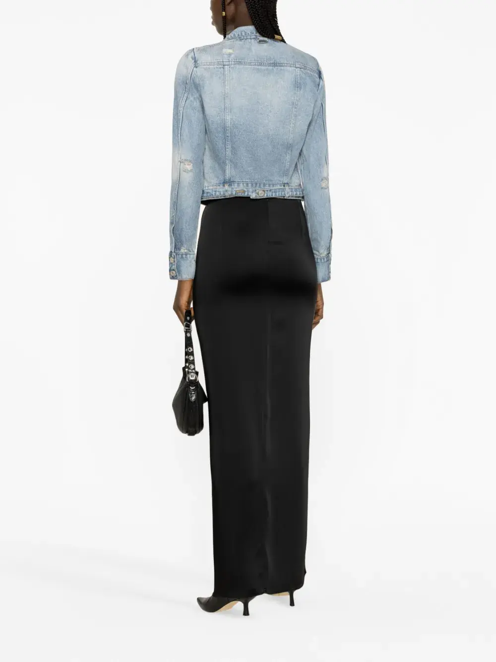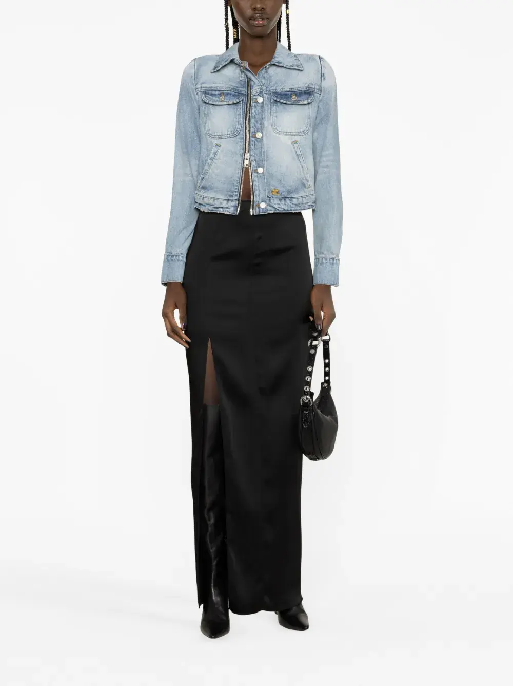 Голубой, хлопок, обработанный деним, вышитый логотип спереди, классический воротник, застежка на молнии спереди, застежка на пуговицах спереди, длинные рукава, два передних кармана с клапанами и два прорезных кармана сбоку