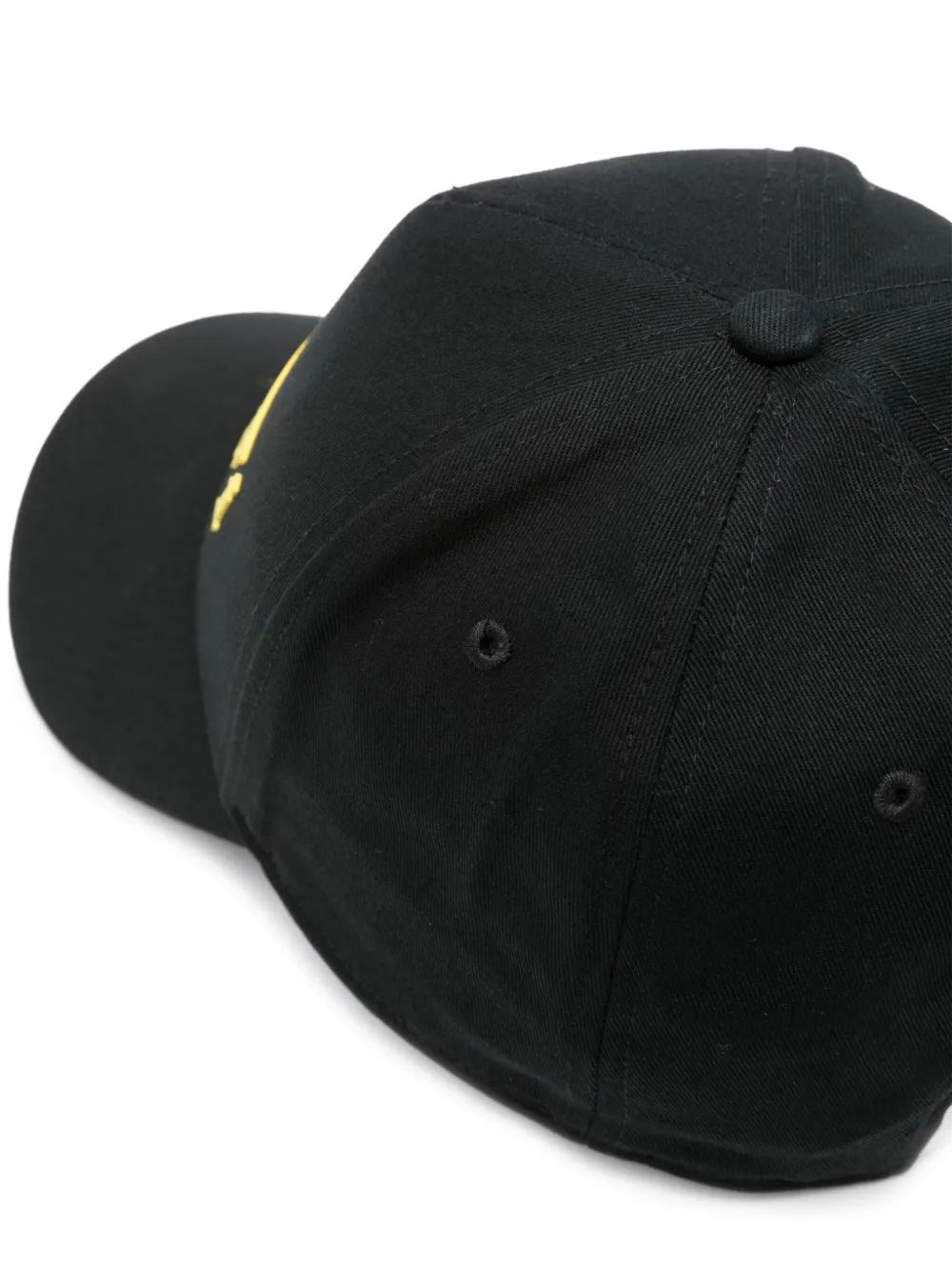Черный, тисненый логотип спереди, шесть панелей, закругленный козырек, модель без застежки, регулируемый дизайн и застежка на липучке сзади