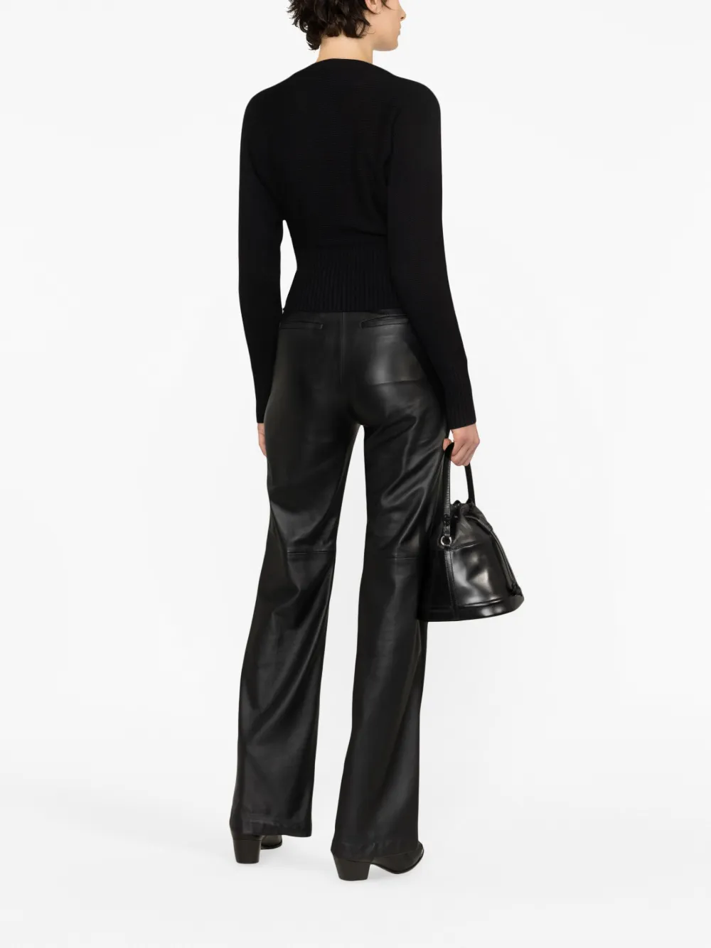 Черный, смесовая шерсть, серебристые заклепки, вязаные края в рубчик, узор с изображением символа мира, круглый вырез, длинные рукава и прямой подол