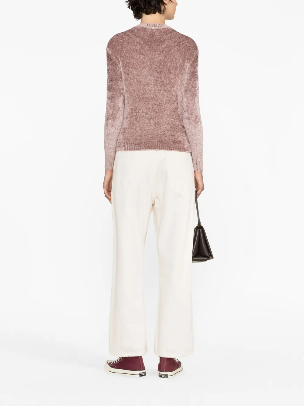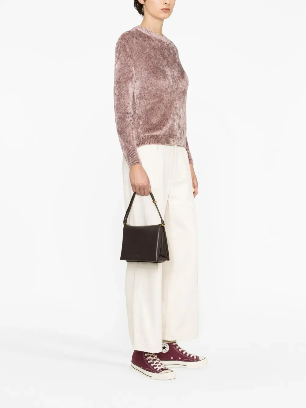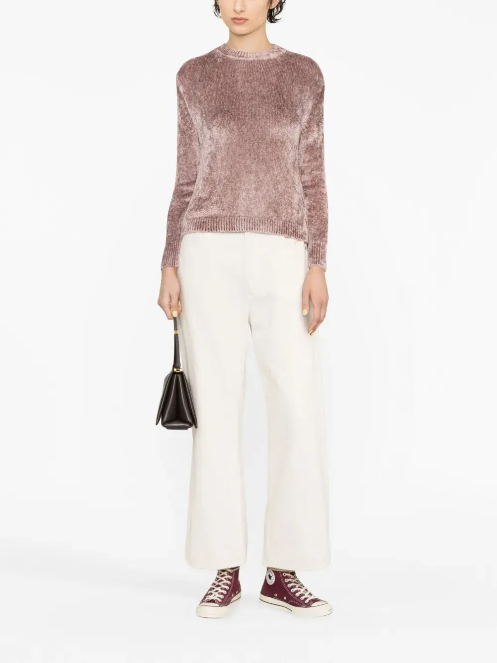 Лиловый, трикотажный материал, материал с шениловой текстурой, круглый вырез, приспущенные плечи и длинные рукава