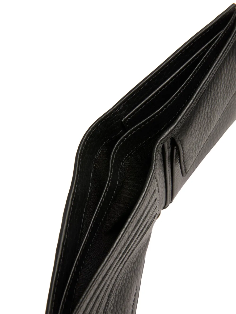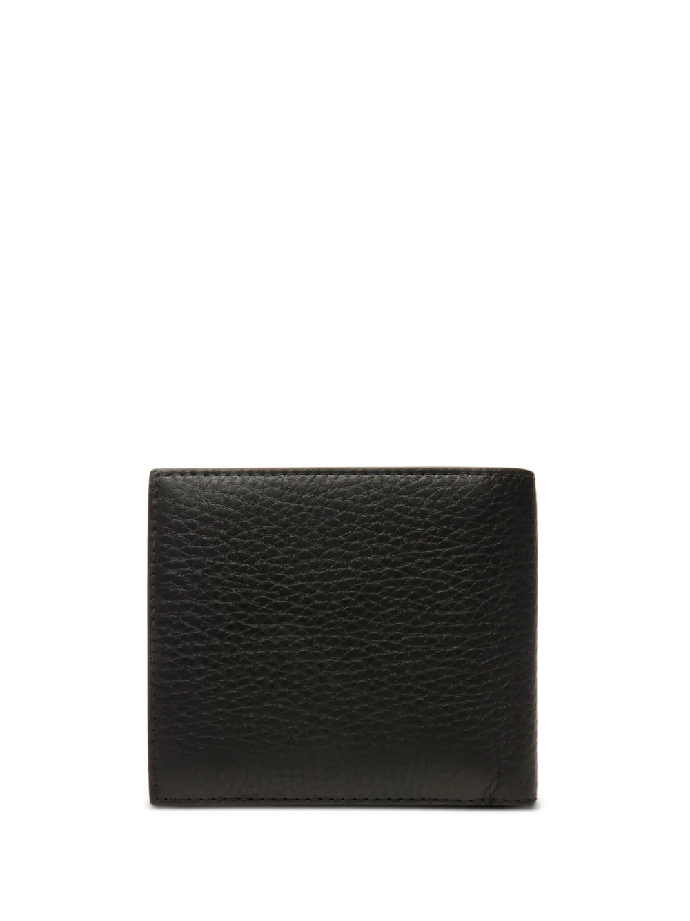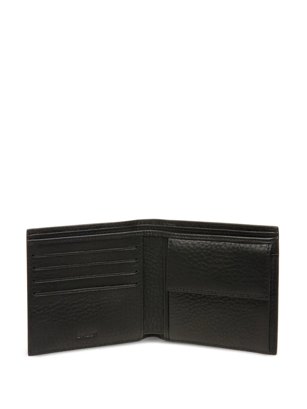 Черный, телячья кожа, зернистая текстура, два сложения, ободок с лентой, тисненый логотип спереди, внутренние отделения для карт, отделение для купюр и отделение для монет