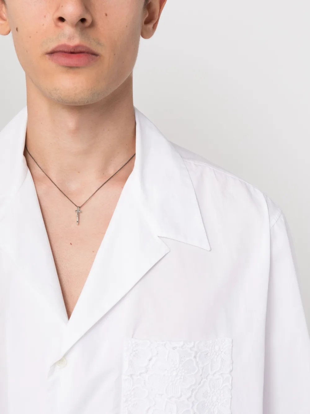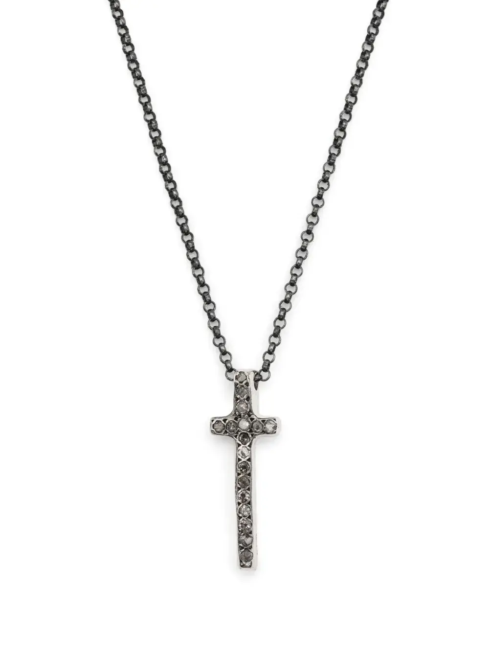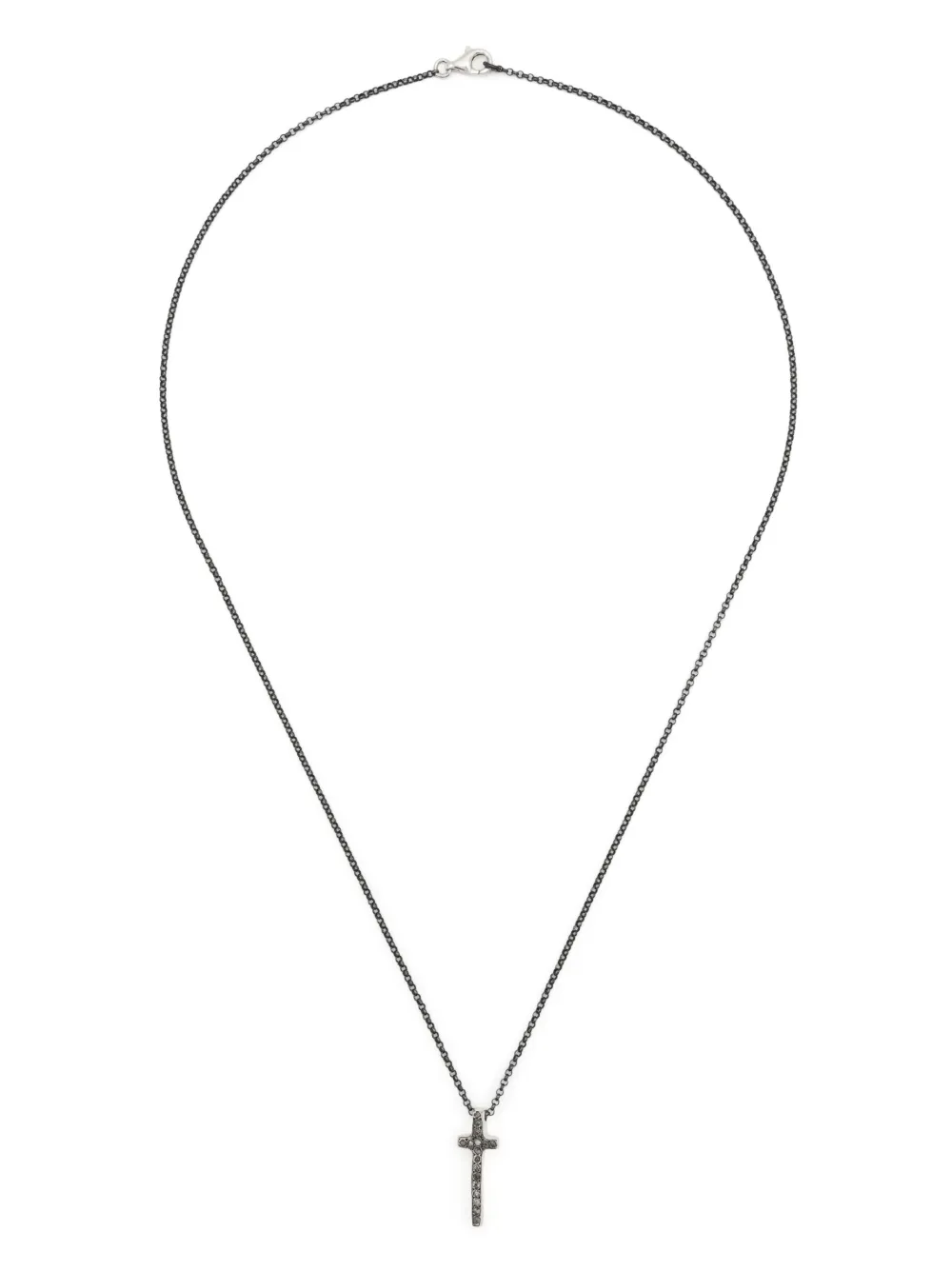 Окисленное серебро, матовое покрытие, подвеска-крест, закрепка паве, серый бриллиант и застежка-карабин