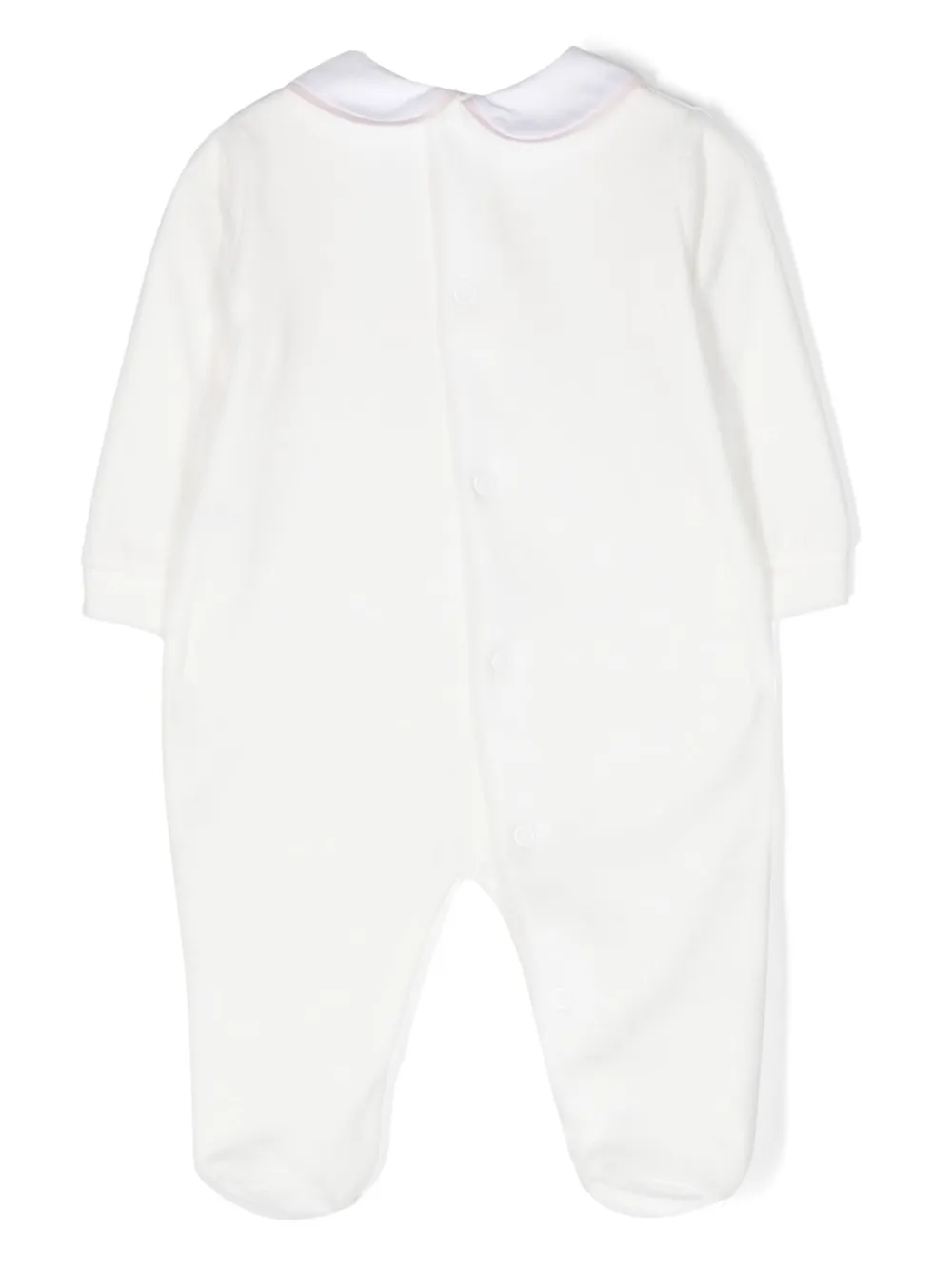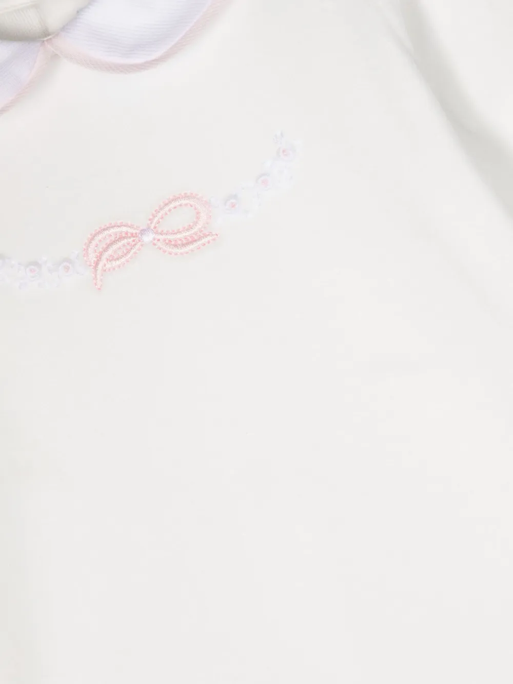 Белый, светло-розовый, смесовый хлопок, слитная модель, бант, вышитый узор, воротник Питер Пэн, длинные рукава и застежка на пуговицы сзади