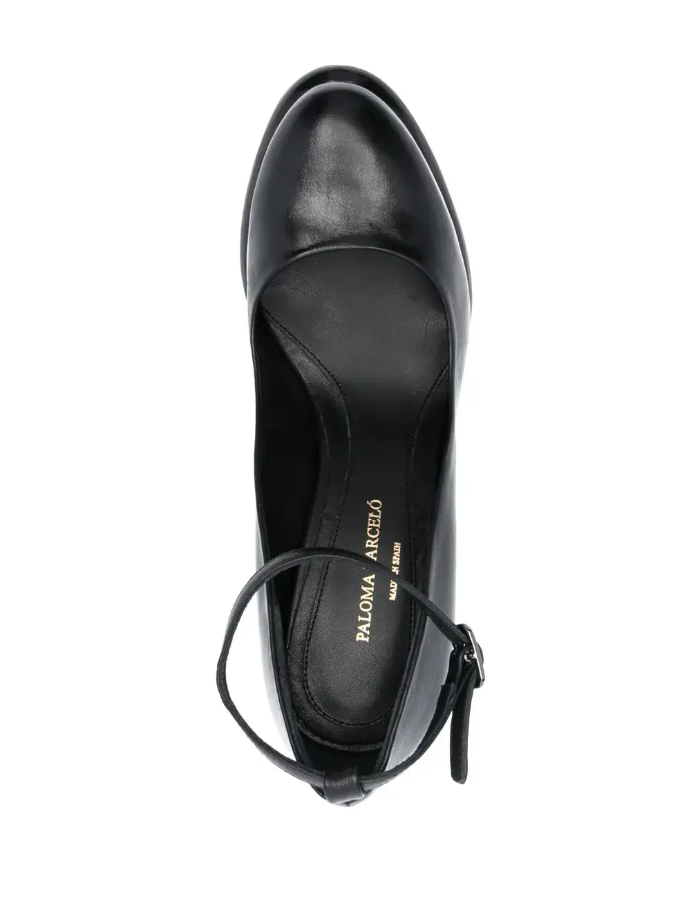 Черный, телячья кожа, ремешок на щиколотке с пряжкой, логотип на стельке, закругленный носок, подошва на платформе и высокий каблук