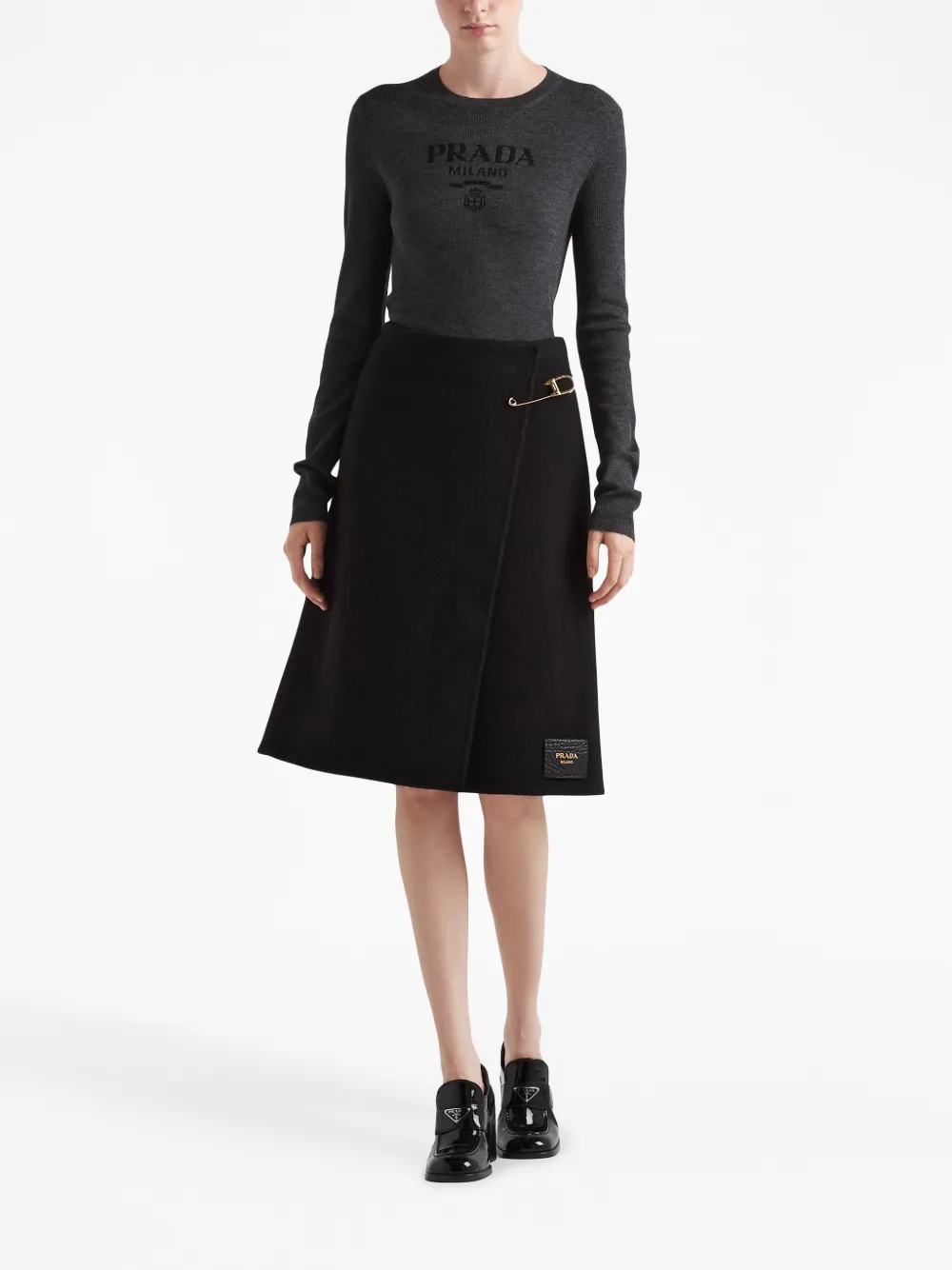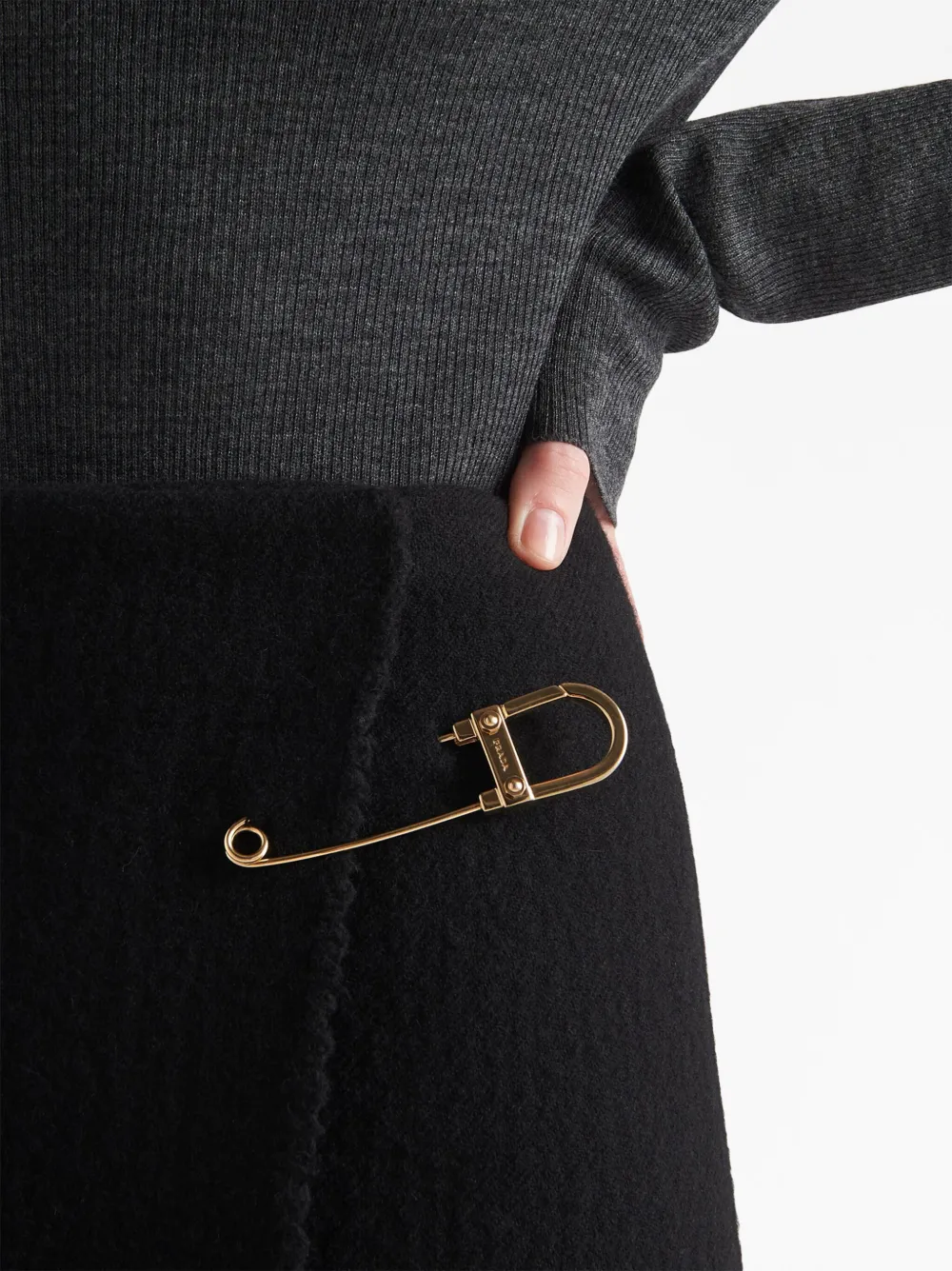 Юбка миди с декоративной булавкой Prada, черный 151 877₽