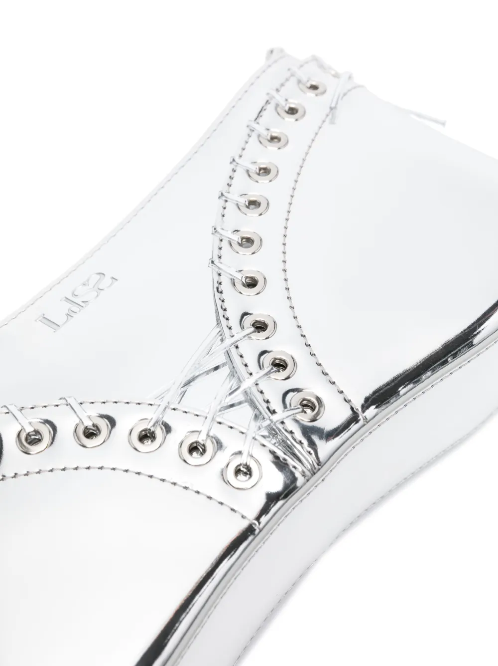 Серебристый, овечья кожа, покрытие с эффектом металлик, логотип спереди, люверсы, шнуровка, застежка на молнии сверху, съемный ремень на плечо, нашивка с логотипом внутри и основное отделение
