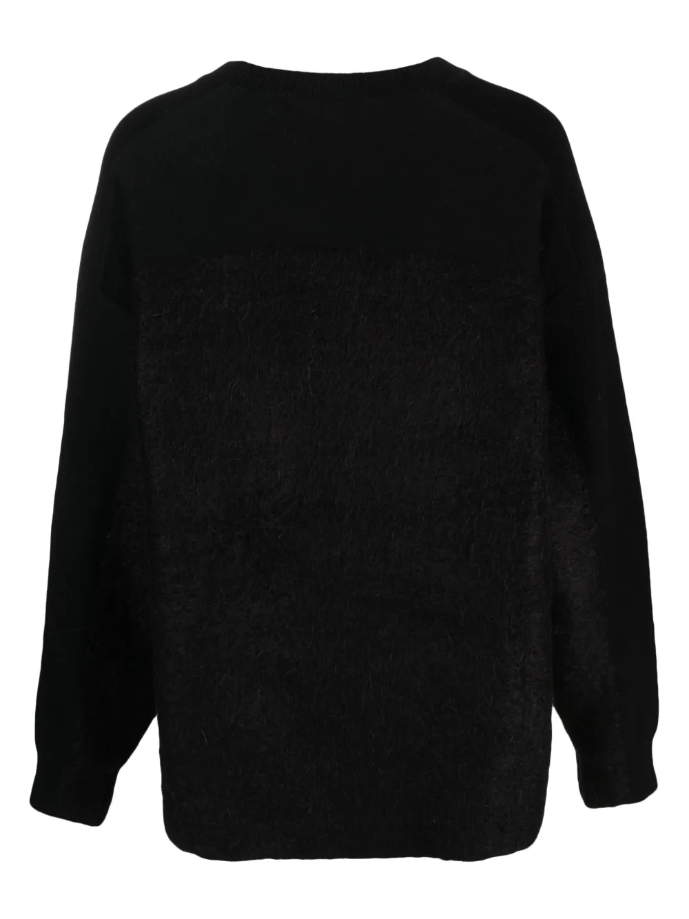 Черный, смесь шерсти и мохера, трикотажный материал, матовый эффект, круглый вырез и длинные рукава