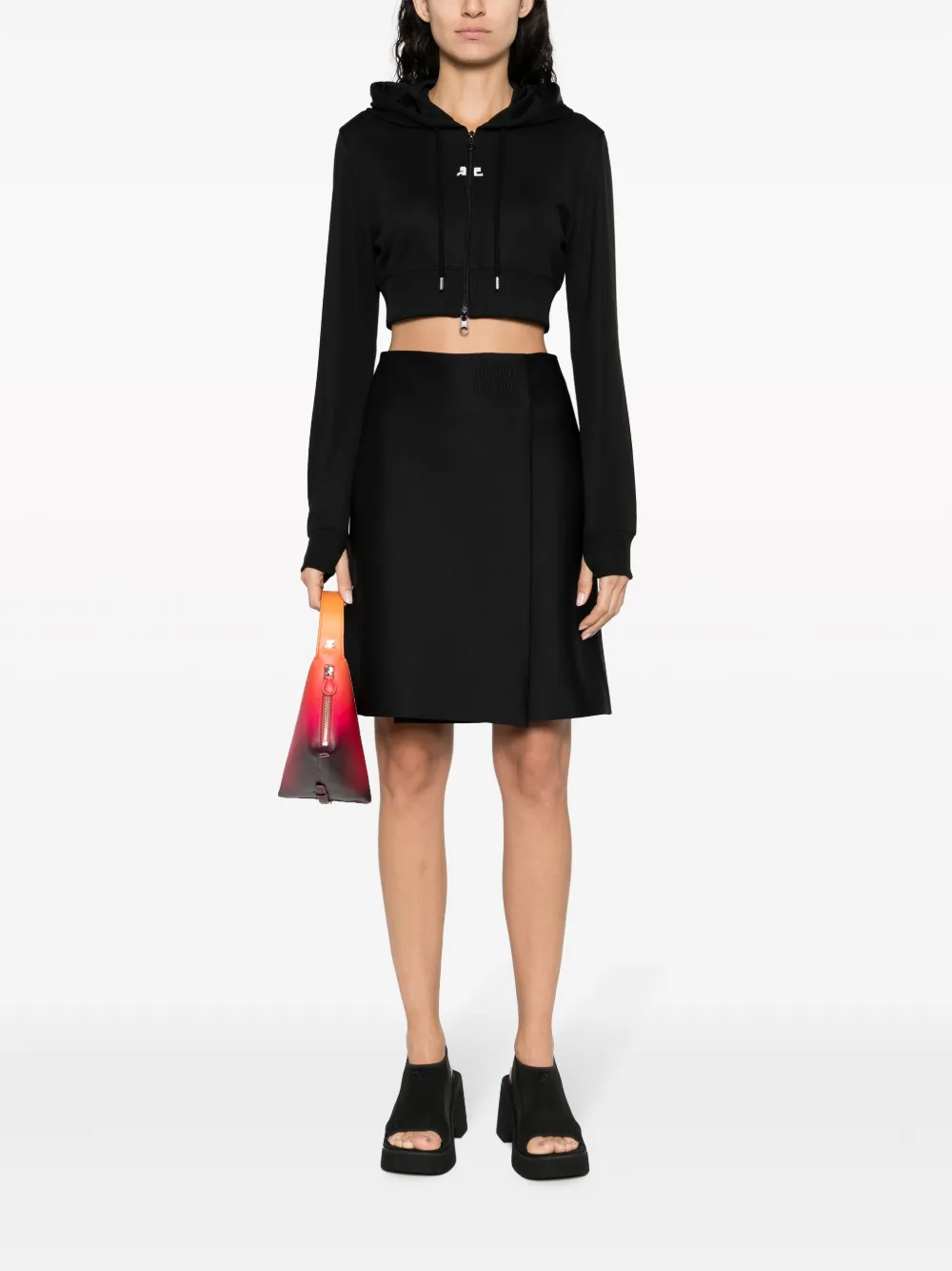 Укороченное худи с нашивкой-логотипом Courrèges, черный 58 127₽