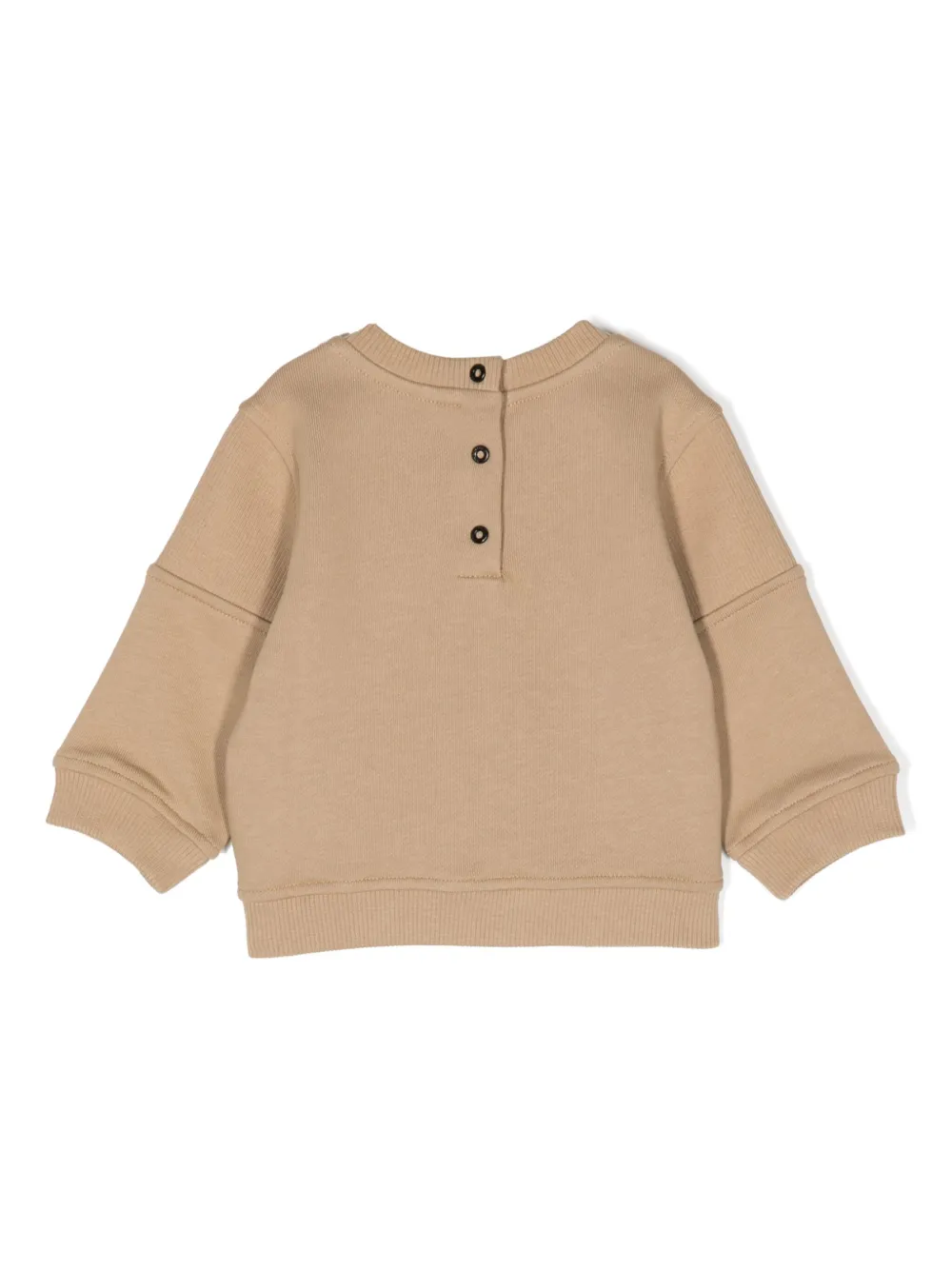 Темно-коричневый, хлопок, логотип спереди, круглый вырез, детали в рубчик, длинные рукава и застежка на кнопках сзади