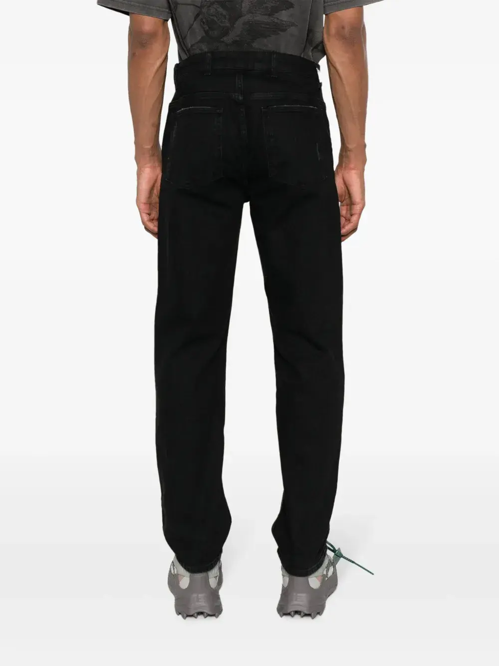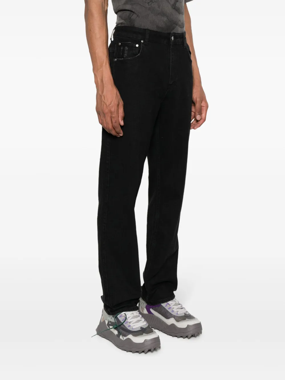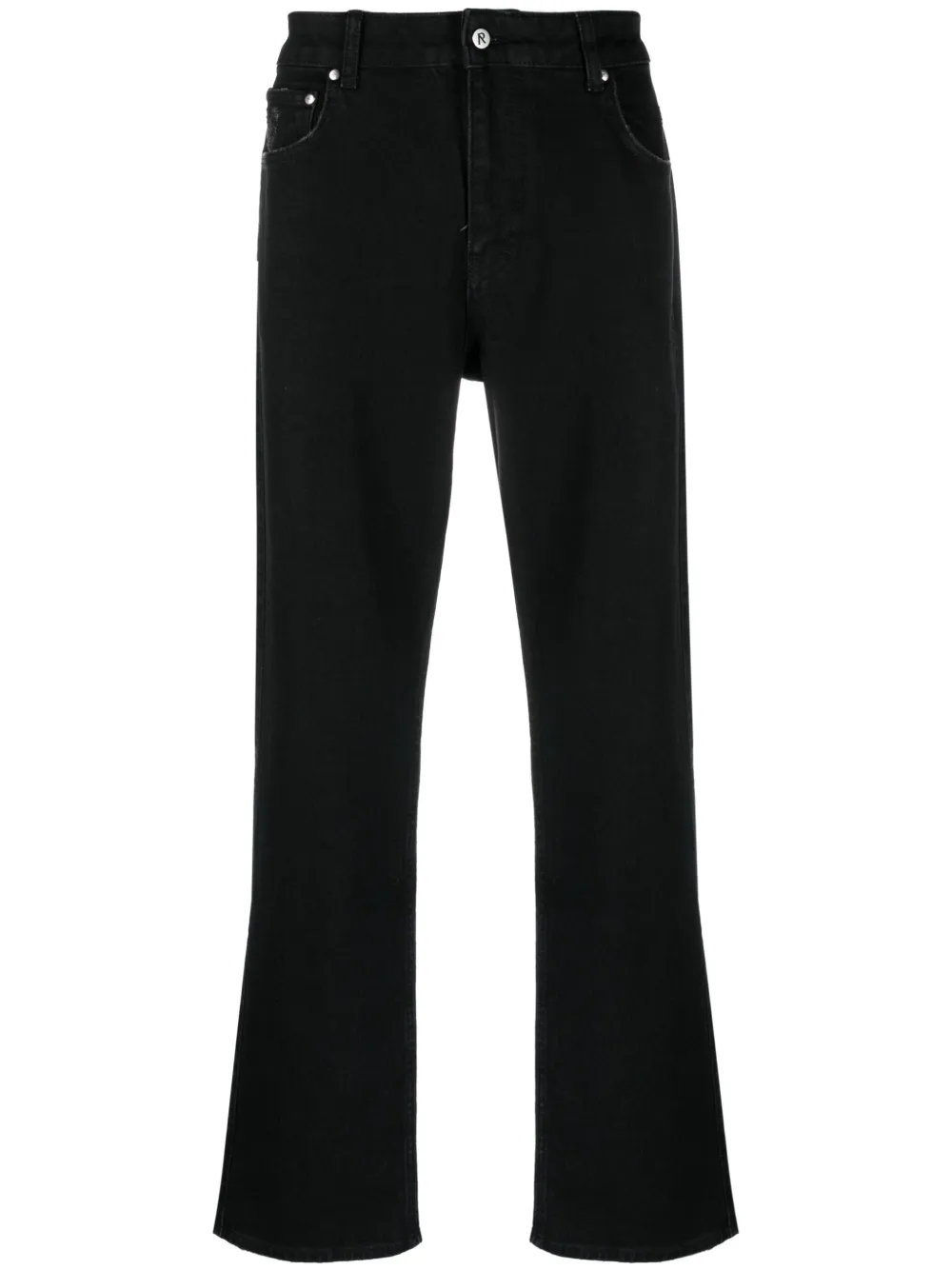 Черный, эластичный хлопок, петли для ремня, ширинка на пуговицах, пять карманов и прямой крой