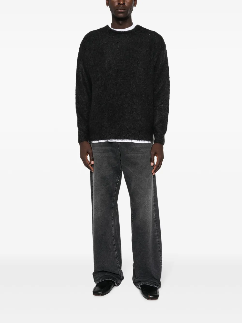 Черный, смесь мохера и шерсти, материал c флисовой текстурой, отделка в рубчик, круглый вырез, длинные рукава и прямой подол