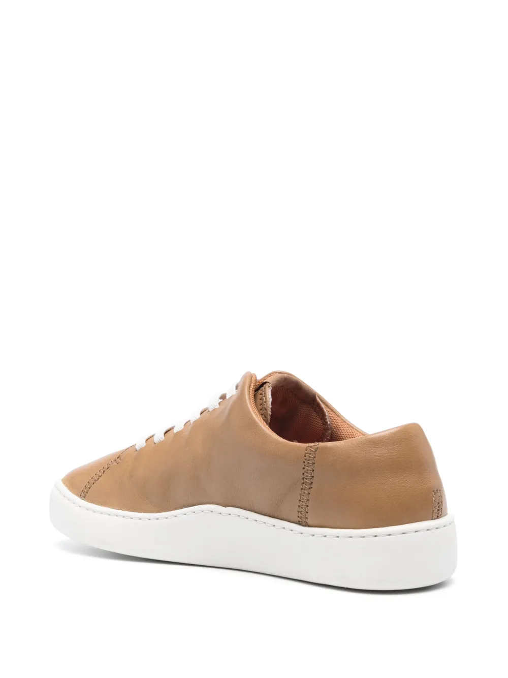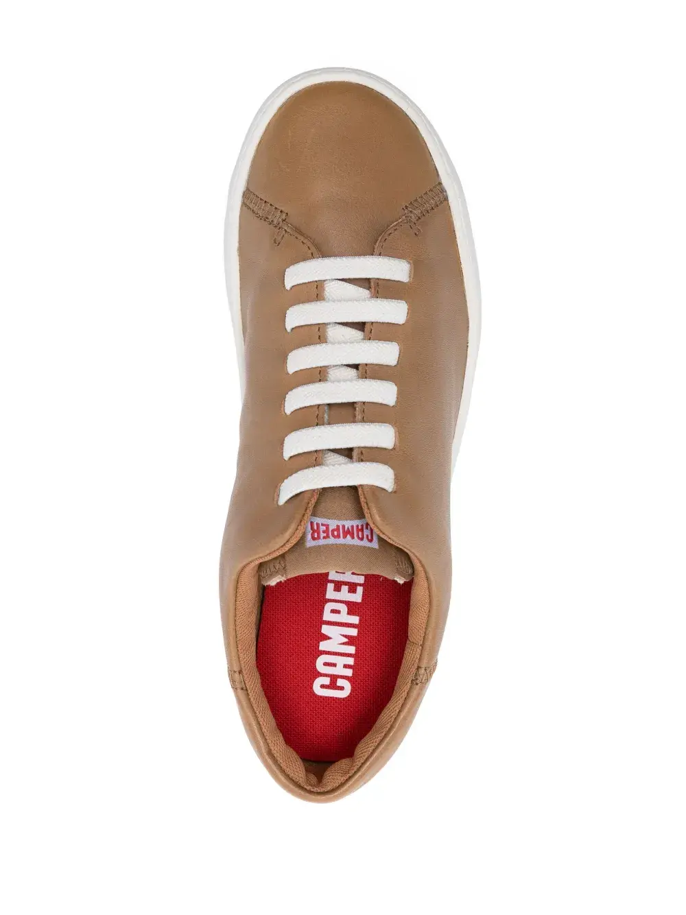 Карамельный, телячья кожа, переработанный полиэстер, нашивка с логотипом на язычке, закругленный носок, шнуровка спереди, стелька с логотипом и плоская резиновая подошва