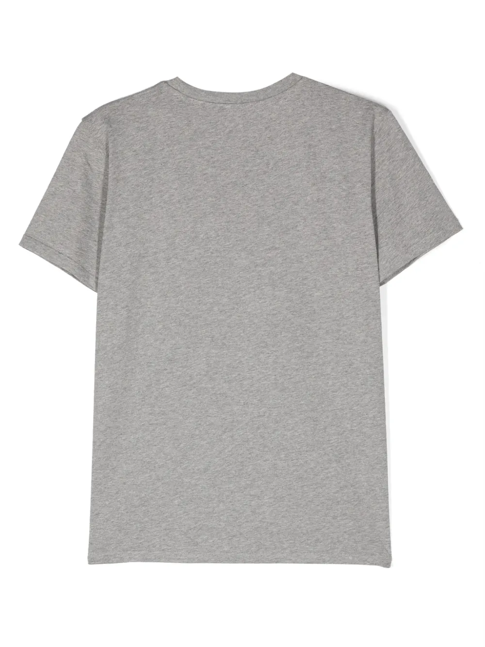 Светло-серый, хлопок, эффект меланж, серебристый логотип, круглый вырез, короткие рукава и прямой подол