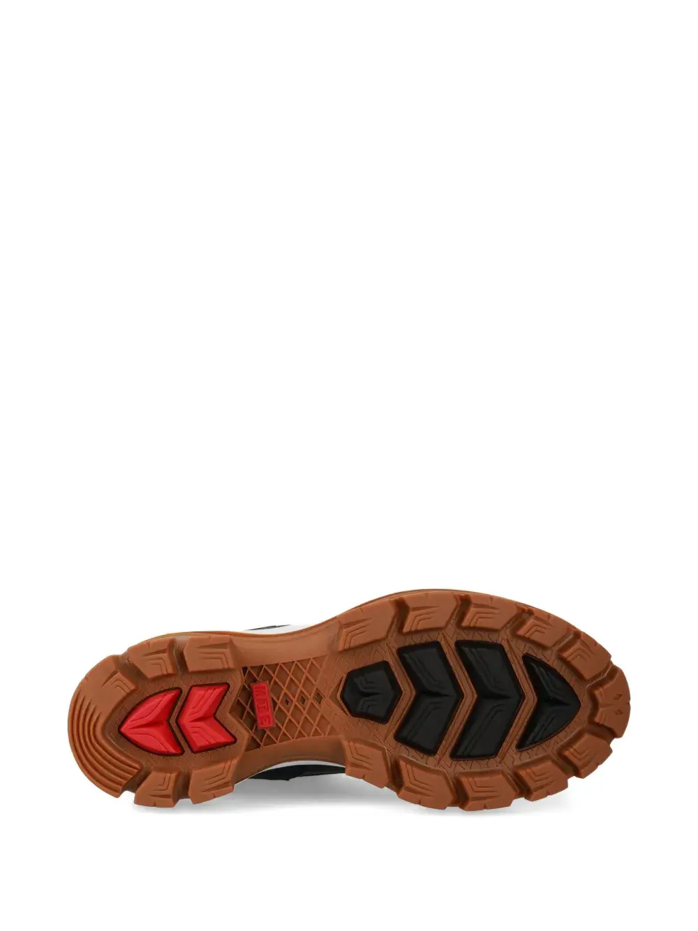 черная расцветка, шнуровка, тракторная подошва, петля для натягивания у верхнего края, рифленые детали, нашивка с логотипом