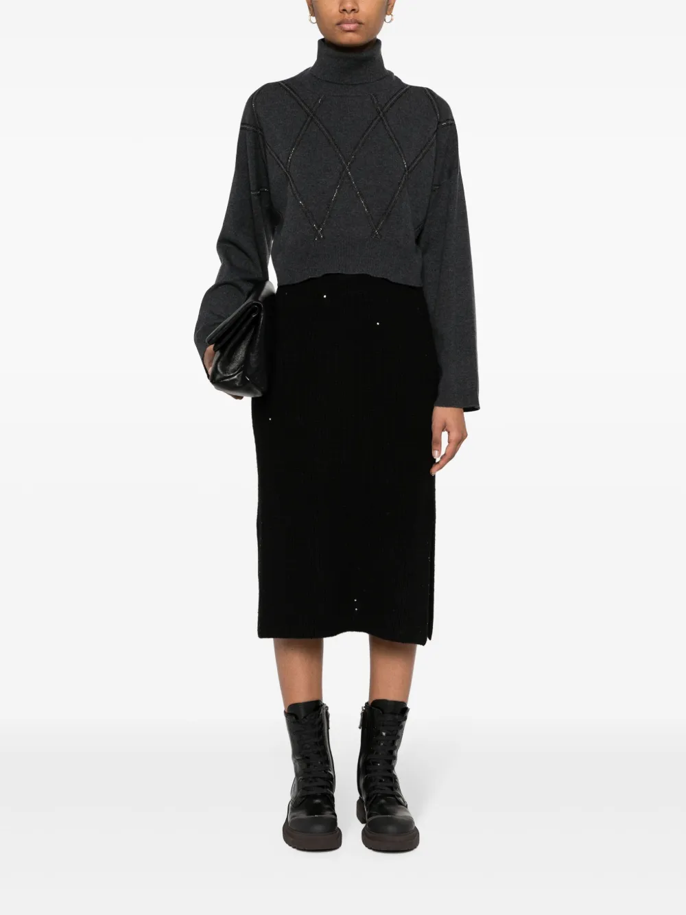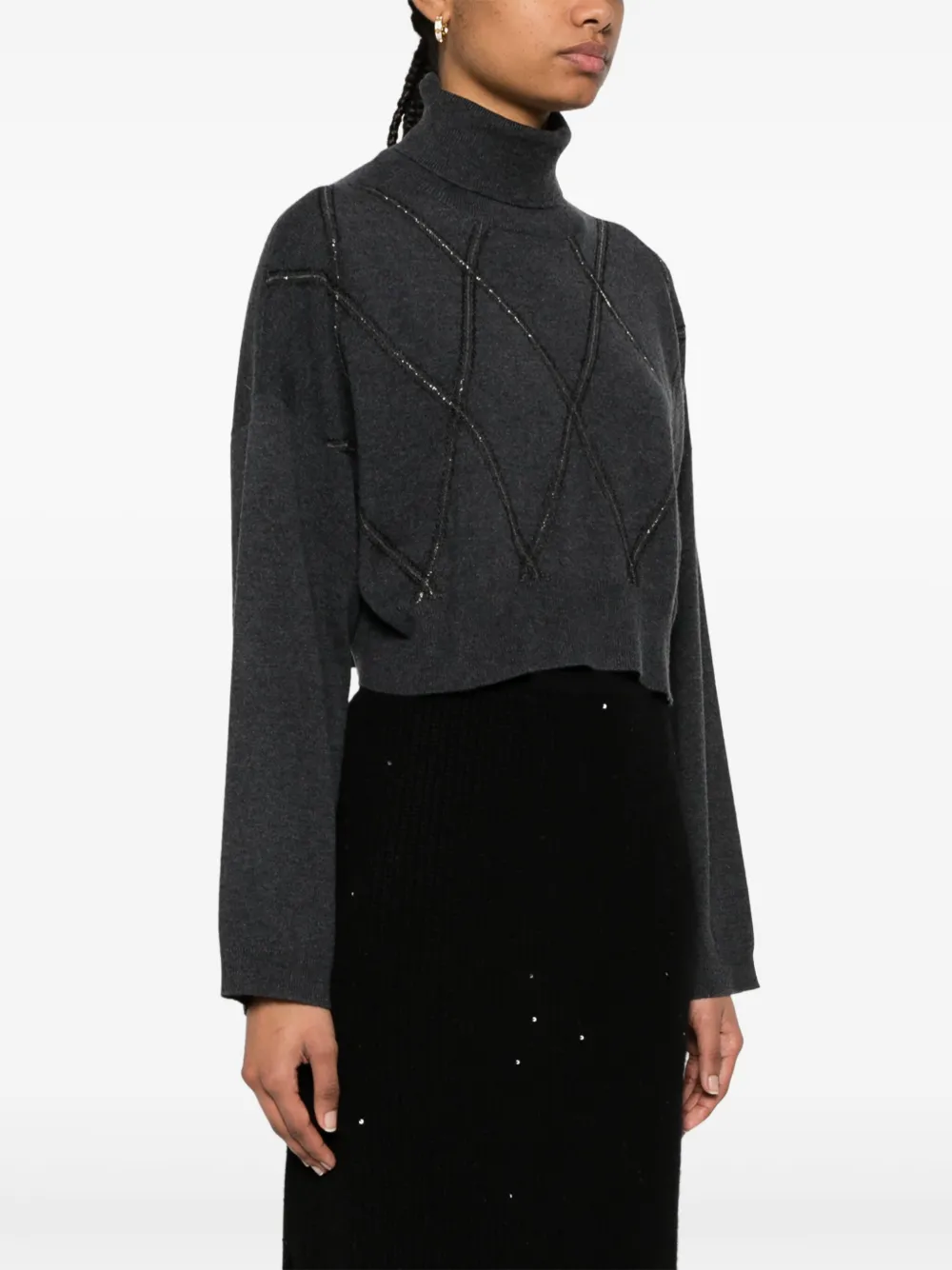 Укороченный топ с декором Monili Brunello Cucinelli, серый