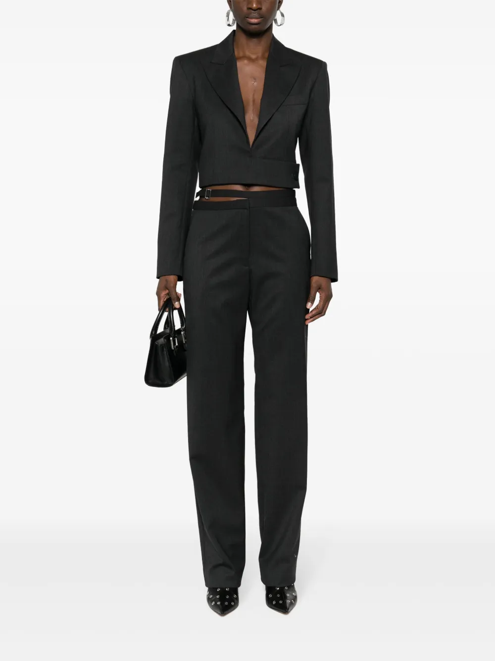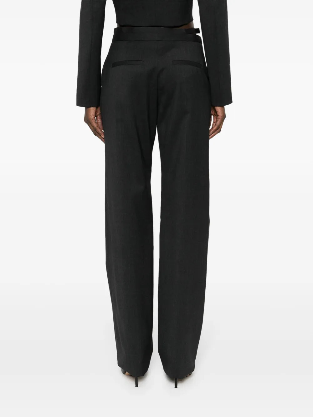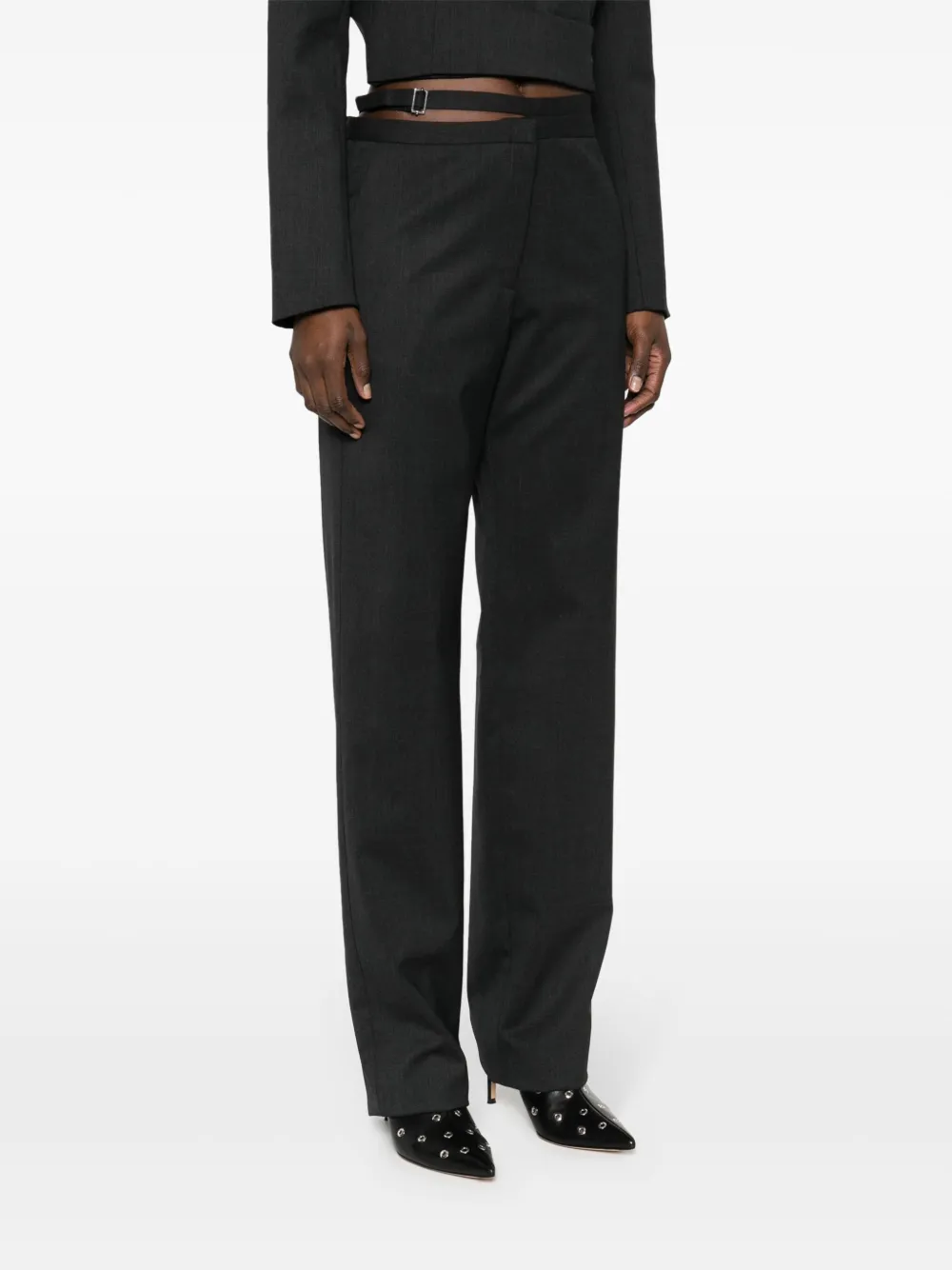 прямой крой: брюки плотно сидят на талии, но не облегают ноги