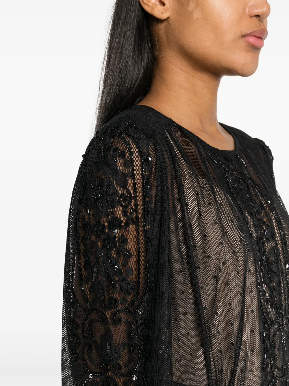 Размер на модели "40(IT)" рост 1,8 м (5 фт 11 д) грудь 78 см (30,7 д) бедра 89 см (35,03 д) талия 62 см (24,4 д)