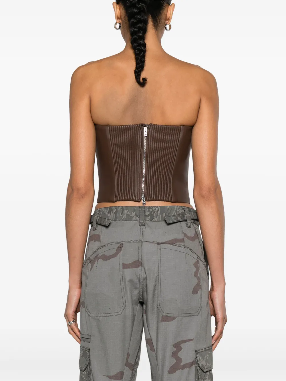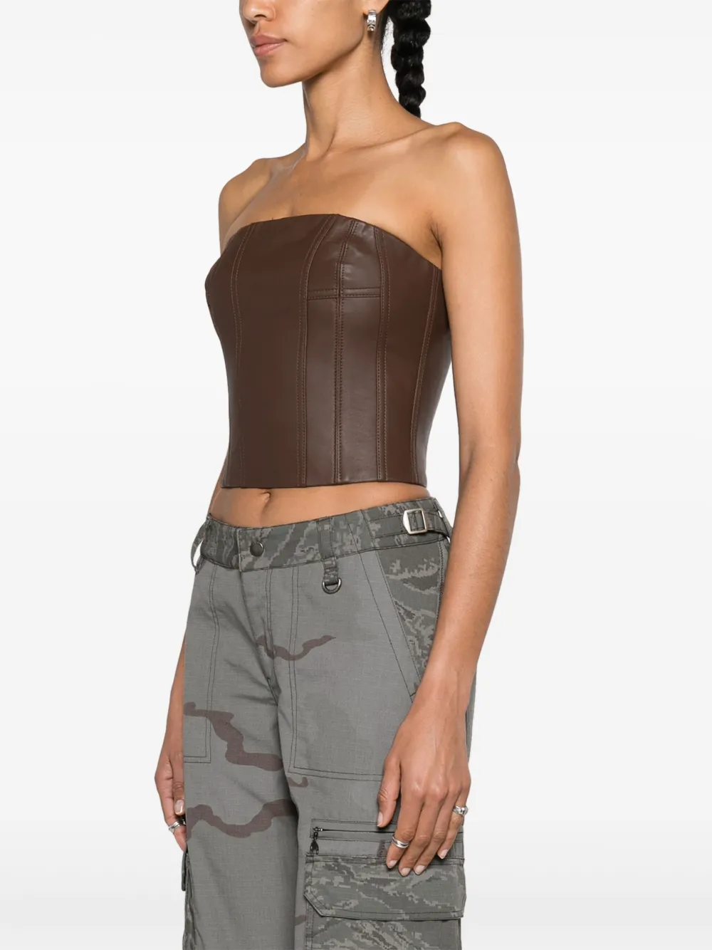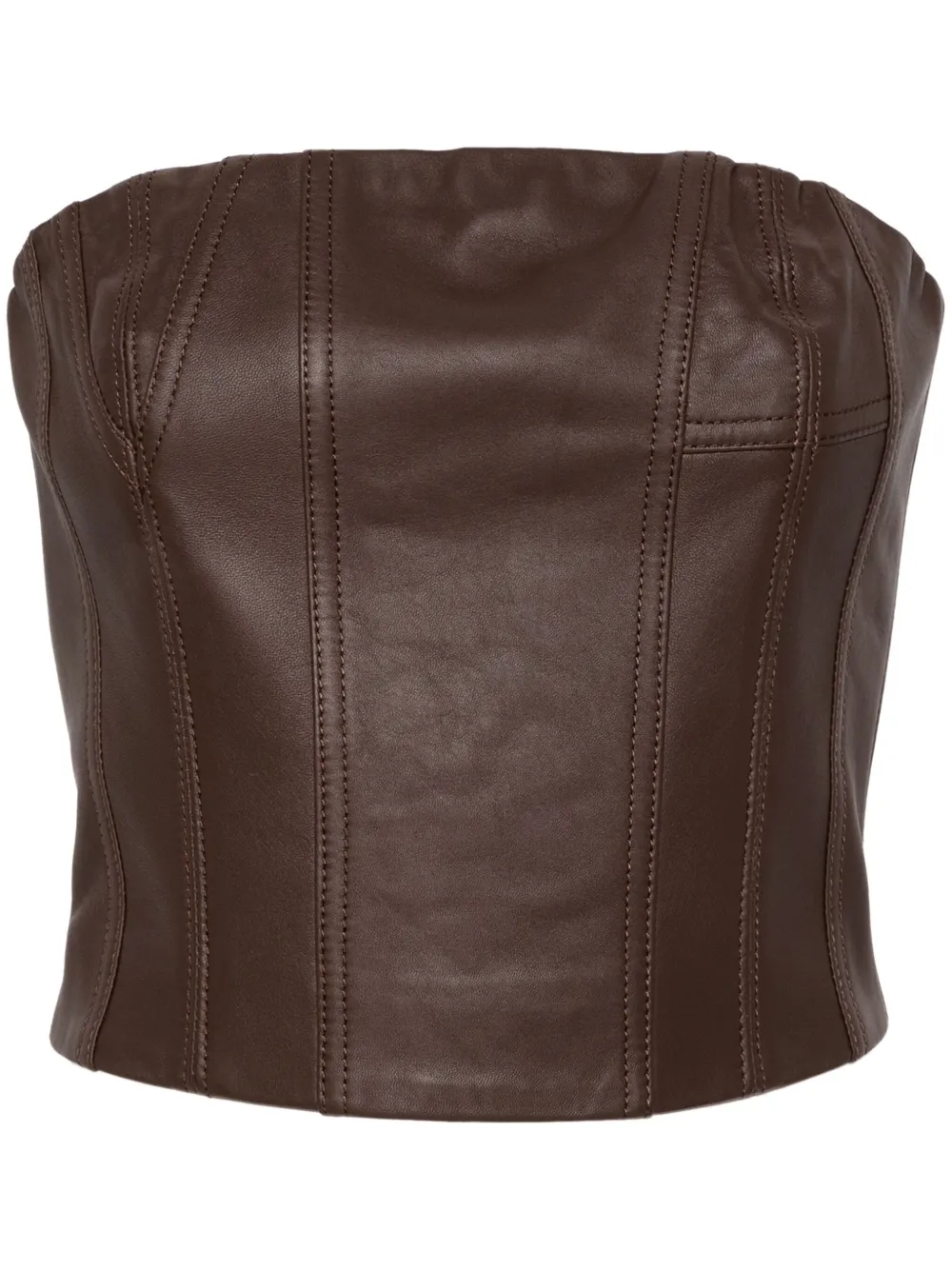 Кожаный топ-бюстье Amiri, коричневый 122 503₽
