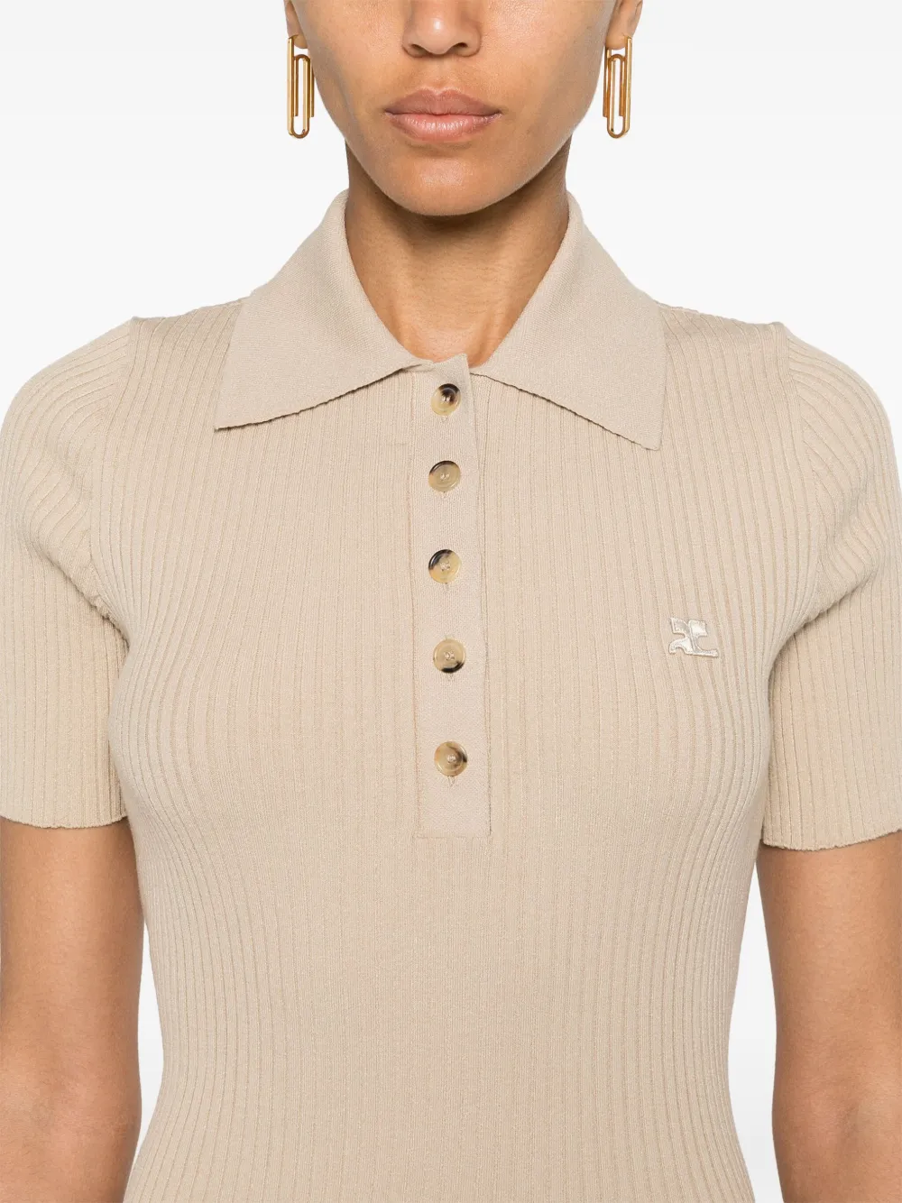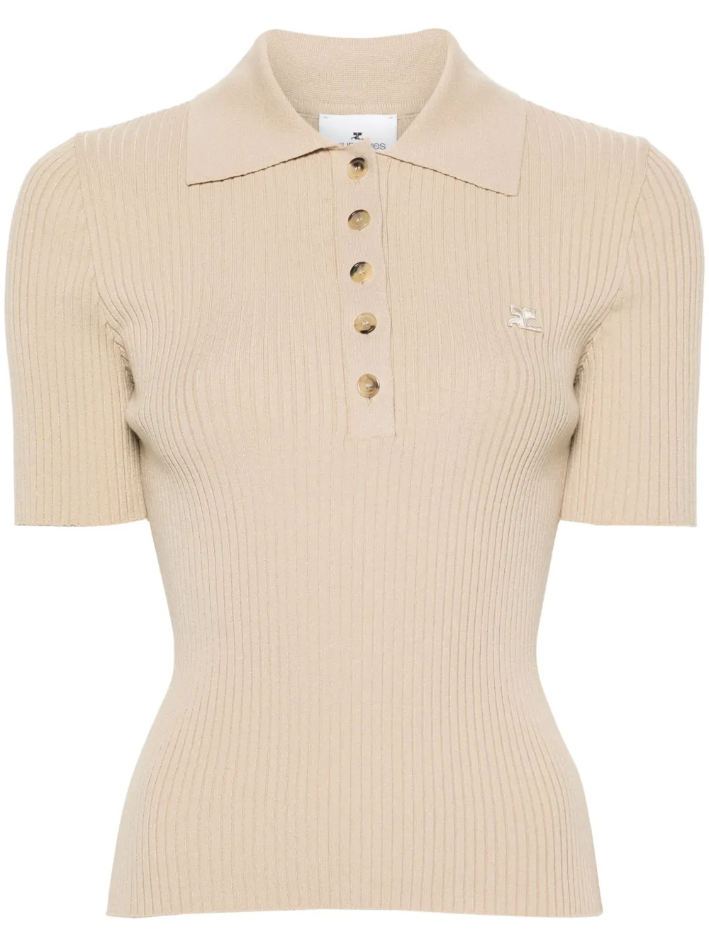 Рубашка поло с нашивкой-логотипом Courrèges, бежевый